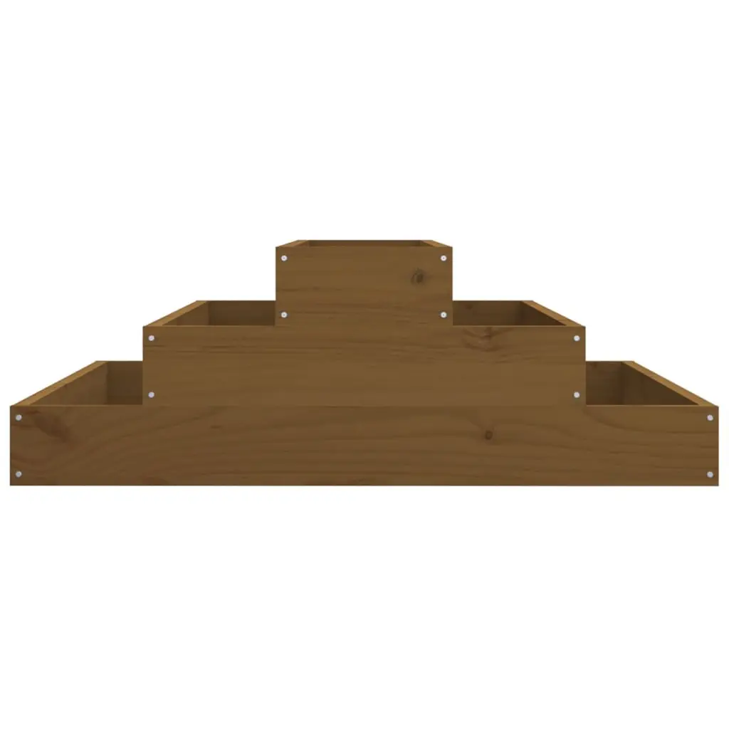 This rustic wooden planter is a great addition to any outdoor space. Made from solid pine wood, it sports a lovely honey brown color and a unique pyramid design, perfect for sprucing up your garden decor or balcony. Stair-step Design: The unique pyramid shape not only adds visual interest but also optimizes space for various plants.Spacious and Functional: At 31.5 x 31.5 x 10.6 in, this planter gives roots plenty of space to grow well.Durable Construction: Made from solid pine wood, this planter stands up to outdoor conditions while keeping its rustic charm.UV Resistant: The quality wood treatment helps prevent fading and UV damage, keeping your plants safe.Versatile Use: Great for flowers, veggies, or herbs, this planter is both functional and a decorative addition to any outdoor spot.