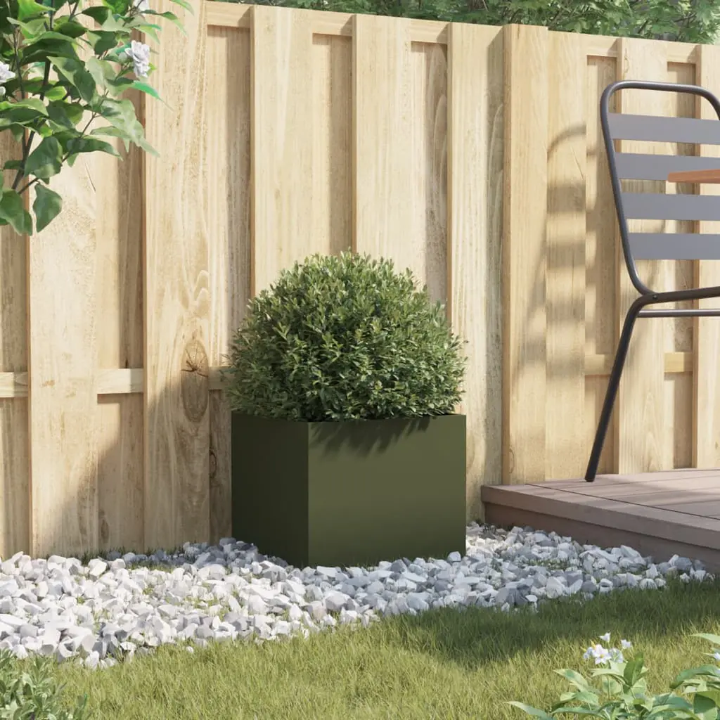 Vidaxl Planter Olive Green Cold-Rolled Steel 12.6x11.8x11.4 In Durable