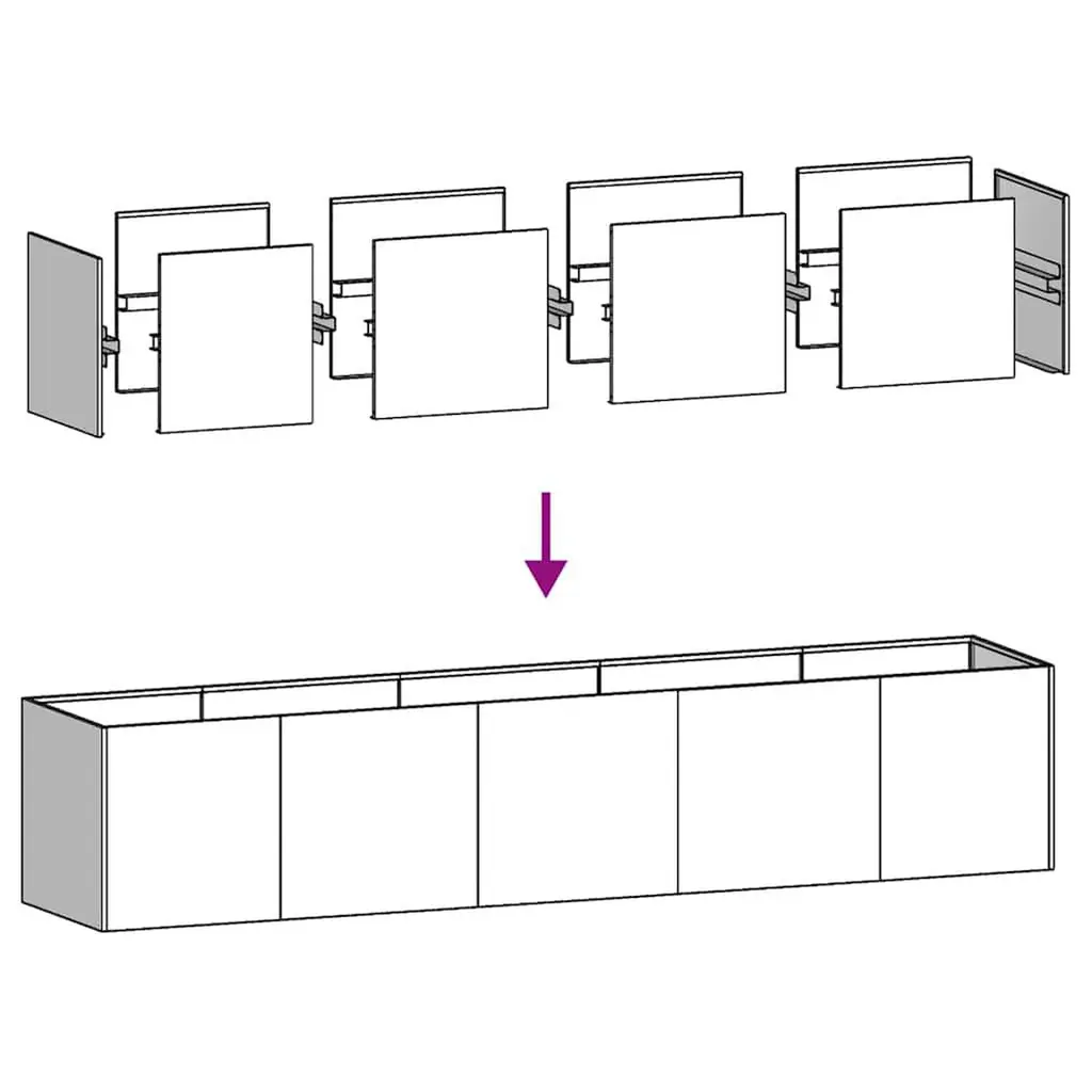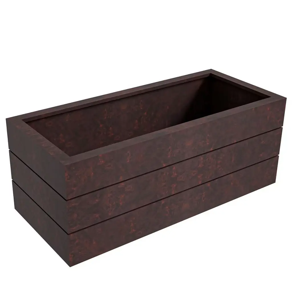 This large rectangular planter has a rustic flair thanks to its weathering steel. At 78.7 x 15.7 x 15.7 in, it's perfect for outdoor spots like balconies, letting you flaunt a variety of plants stylishly. Durability: Made from weathering steel, this planter is built to last and handle tough outdoor conditions.Heavy-Duty Construction: Built to hold heavier plants, putting your mind at ease about any tipping or damage.Weathered Finish: Gives it a unique rustic look that goes nicely with modern gardens and boosts your outdoor style.Outdoor Usage: Suited for outdoors, this planter works wonderfully in gardens, balconies, and patios, allowing you to show off your plants.Interior Support Brackets: Each planter comes with strong interior brackets to keep your plants secure and stable. Good to know:This product is not rusted yet and has a normal metal colour when you receive it, but rust will develop over time You could speed up the rusting process by spraying it with soap water and salt water To keep your clothes stain-free, avoid contact with the developing rust layer