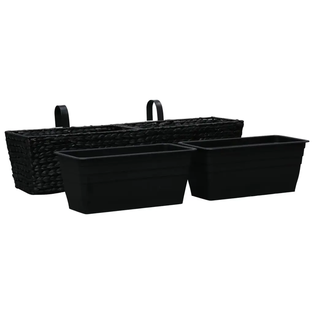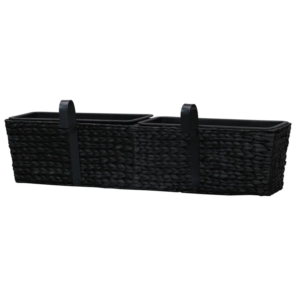 Vidaxl Planter Set Of 2 Black Water Hyacinth And Steel
