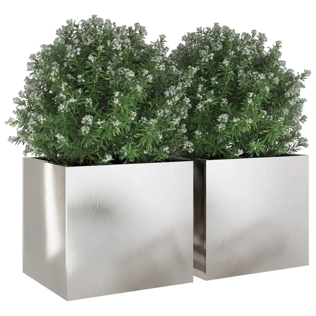 Vidaxl Planter Set Of 2 Silver Stainless Steel Medium Durable