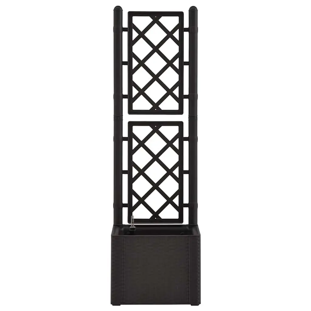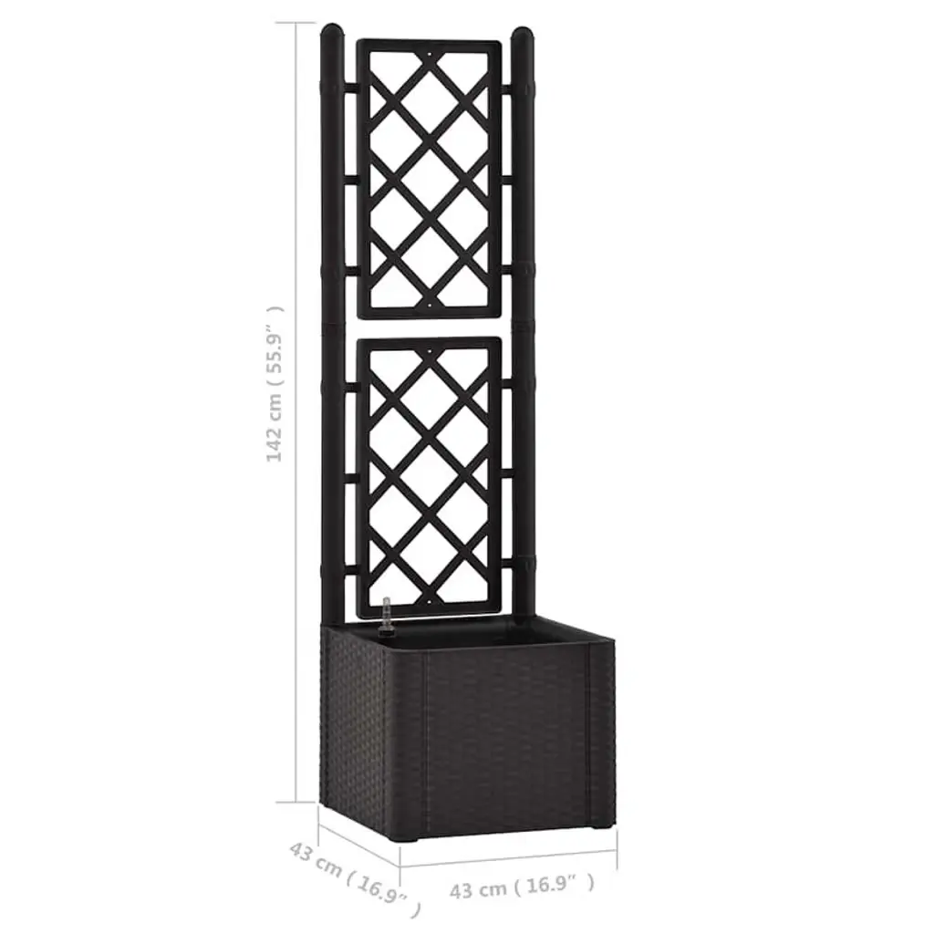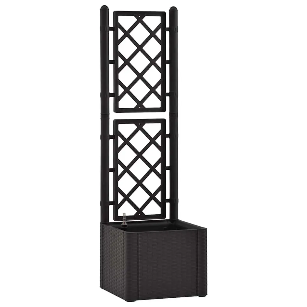 Vidaxl Planter Trellis Raised Flower Bed Self Watering System Rattan Look - Anthracite 16.9" X 16.9" X 55.9"