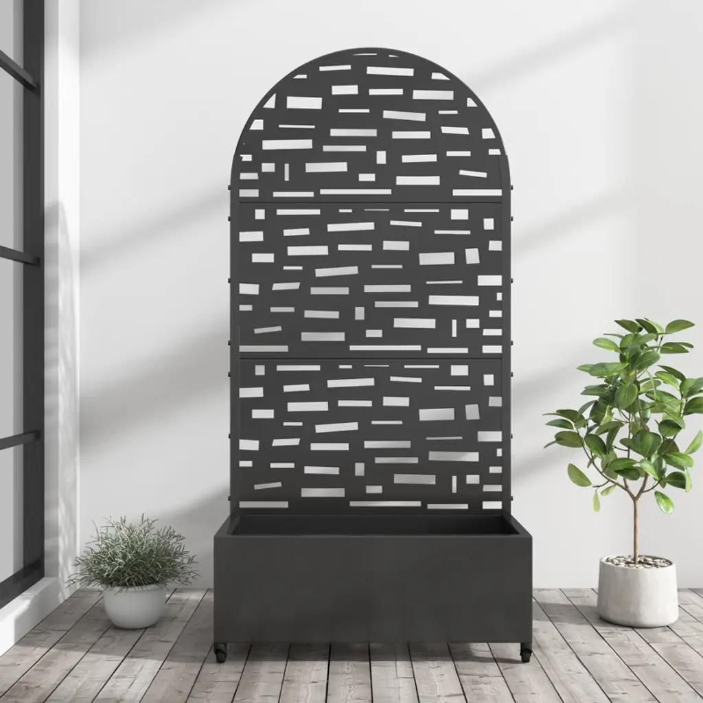 Enhance your outdoor space with this stylish raised flower bed featuring a rattan-look finish and an integrated trellis. Designed for both beauty and functionality, this planter is perfect for growing flowers, herbs, or climbing plants, and includes a convenient self-watering system to help keep your plants healthy with less effort. Key Features • Modern rattan-look finish for a contemporary garden aesthetic • Tall, integrated trellis with a crisscross lattice design supports climbing plants • Self-watering system helps maintain optimal soil moisture • Durable construction suitable for outdoor use Available Sizes • 16.9" x 16.9" x 55.9" • 39.4" x 16.9" x 55.9" Available Colors • Anthracite • Gray • Mocha Benefits • Reduces watering frequency with the built-in self-watering system • Ideal for patios, balconies, gardens, or any outdoor area • Easy to assemble and maintain Transform your garden or patio with this versatile and attractive planter, available in multiple sizes and colors to suit your style and space.
