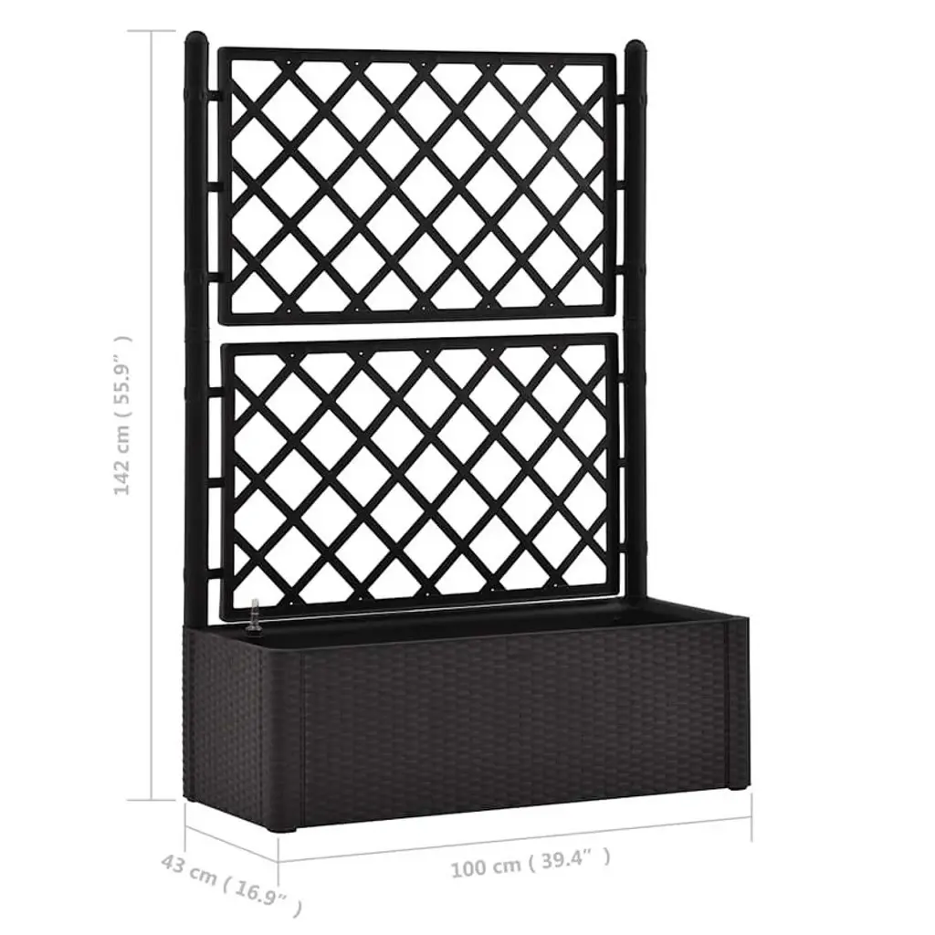 Vidaxl Planter Trellis Raised Flower Bed Self Watering System Rattan Look - Anthracite 39.4" X 16.9" X 55.9"