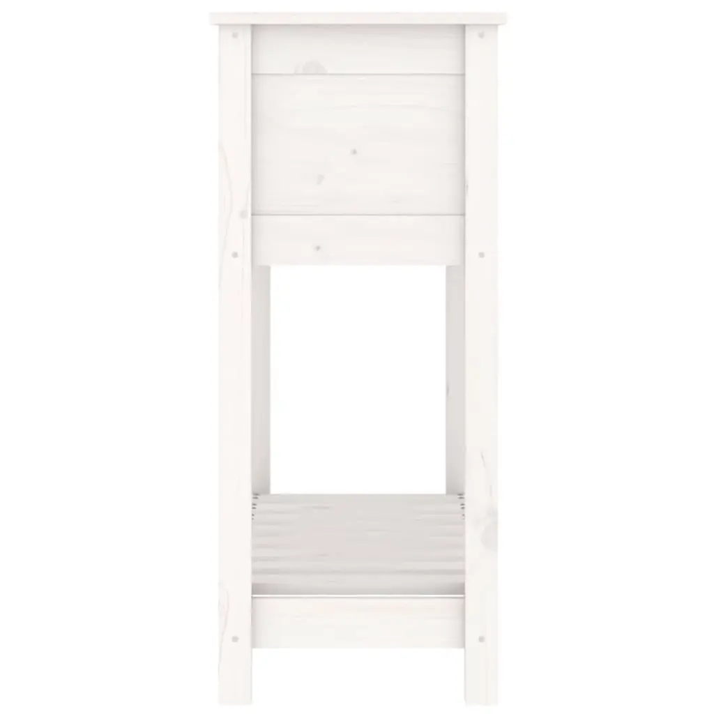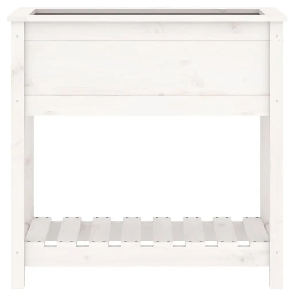 This wooden planter with a shelf is perfect for gardening lovers who want a stylish and practical spot for their plants. The rustic white finish adds charm, making it a great addition to your balcony, garden, or living room. Spacious Design: This planter gives you loads of space for all kinds of veggies, herbs, and flowers, making home gardening a dream. The shelf is fab for keeping tools or decor handy and tidy.Durable Materials: Built from solid pine wood, this planter is made to brave the elements, ensuring it lasts for ages. The painted finish not only looks good but also keeps the wood protected from wear and tear.Indoor and Outdoor Use: Its adaptable design means it can go inside or outside with ease. Want to pretty up your balcony or add a splash of nature to your living room? This planter fits the bill.Ergonomic Height: At 31.9 in tall, this planter’s comfy height lets you tend to your plants without backaches. Perfect for gardening fans who want to enjoy the process.Rustic Aesthetic: The white rustic charm of this planter makes it a great visual piece for any room. Its smooth finish and timeless design mix practicality with elegance, showcasing your plants nicely.