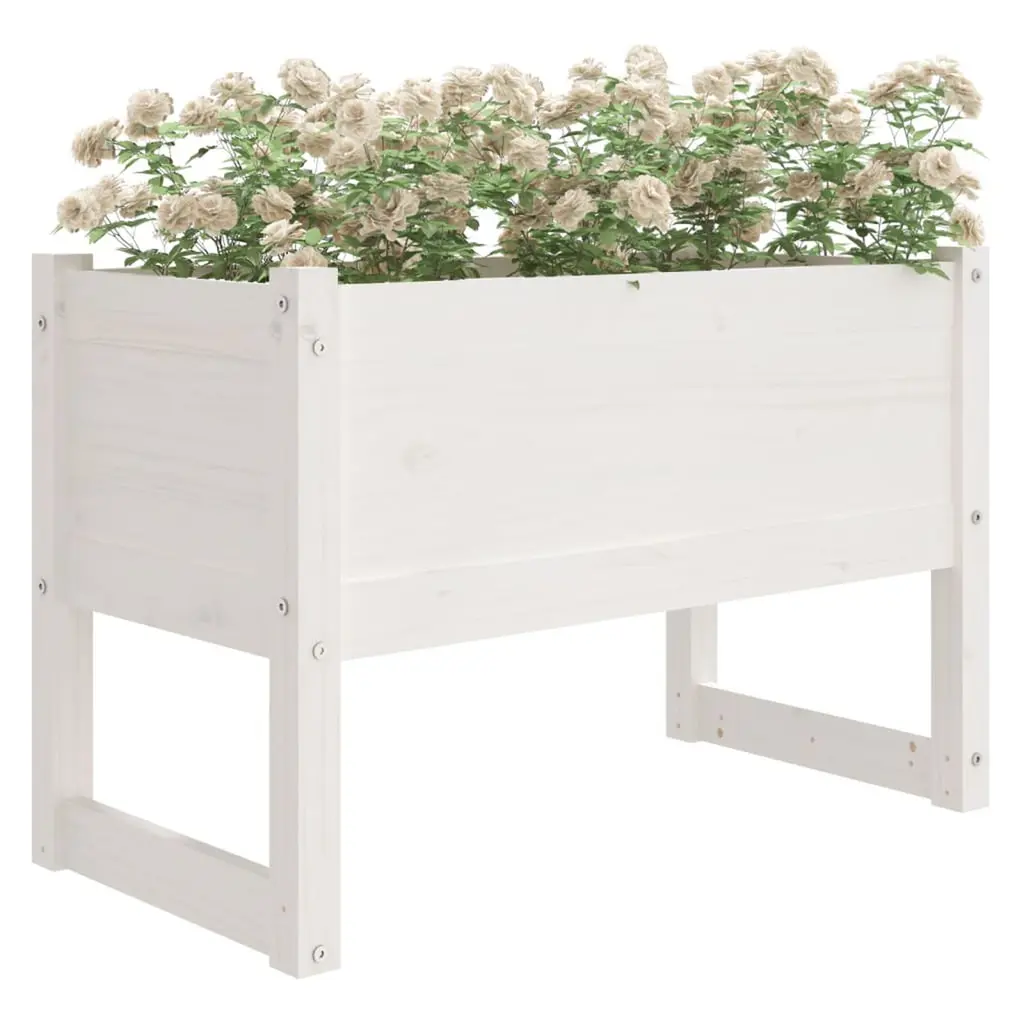 Vidaxl Planter White Solid Pine Wood Medium Decorative Inlays Planter