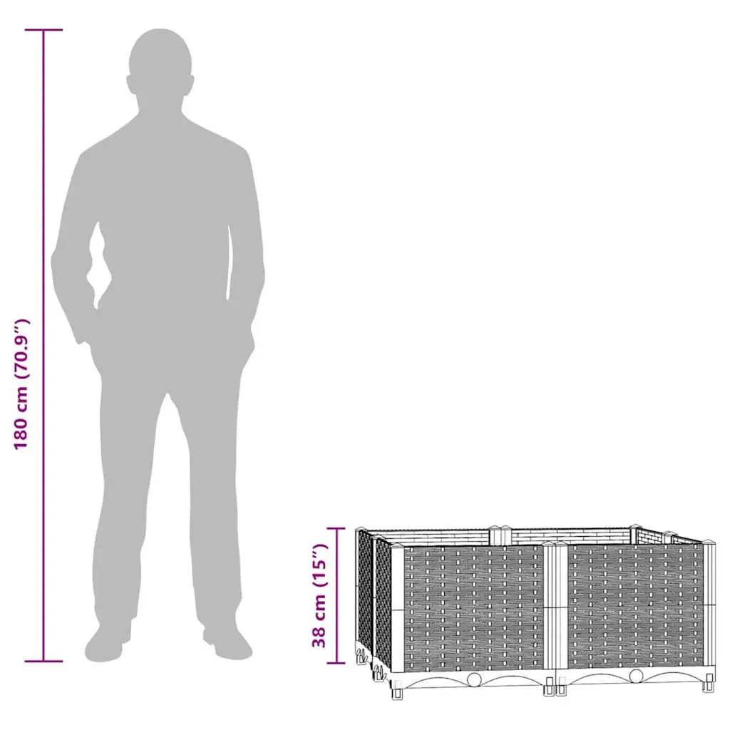 This square raised bed planter is designed to boost your gardening experience, providing a stylish solution for planting flowers, herbs, and veggies. With dimensions of 31.5 x 31.5 x 15.0 in, it offers loads of room for a variety of plants to thrive, making it a top addition to any outdoor space. Durable Construction: Made from sturdy polypropylene, this planter lasts a long time and withstands the weather, making it great for outdoor use.Ample Planting Room: Its generous size allows for a good amount of soil and plants, promoting healthy growth.Textured Finish: The matte texture not only looks cool but also blends in nicely with any garden decor.Easy Maintenance: Just wipe clean with a damp cloth to keep your planter looking fab for blooming flowers or lush veggies.Versatile Use: Perfect for balconies, patios, and gardens, this planter is great for all sorts of plants, from flowers to herbs.