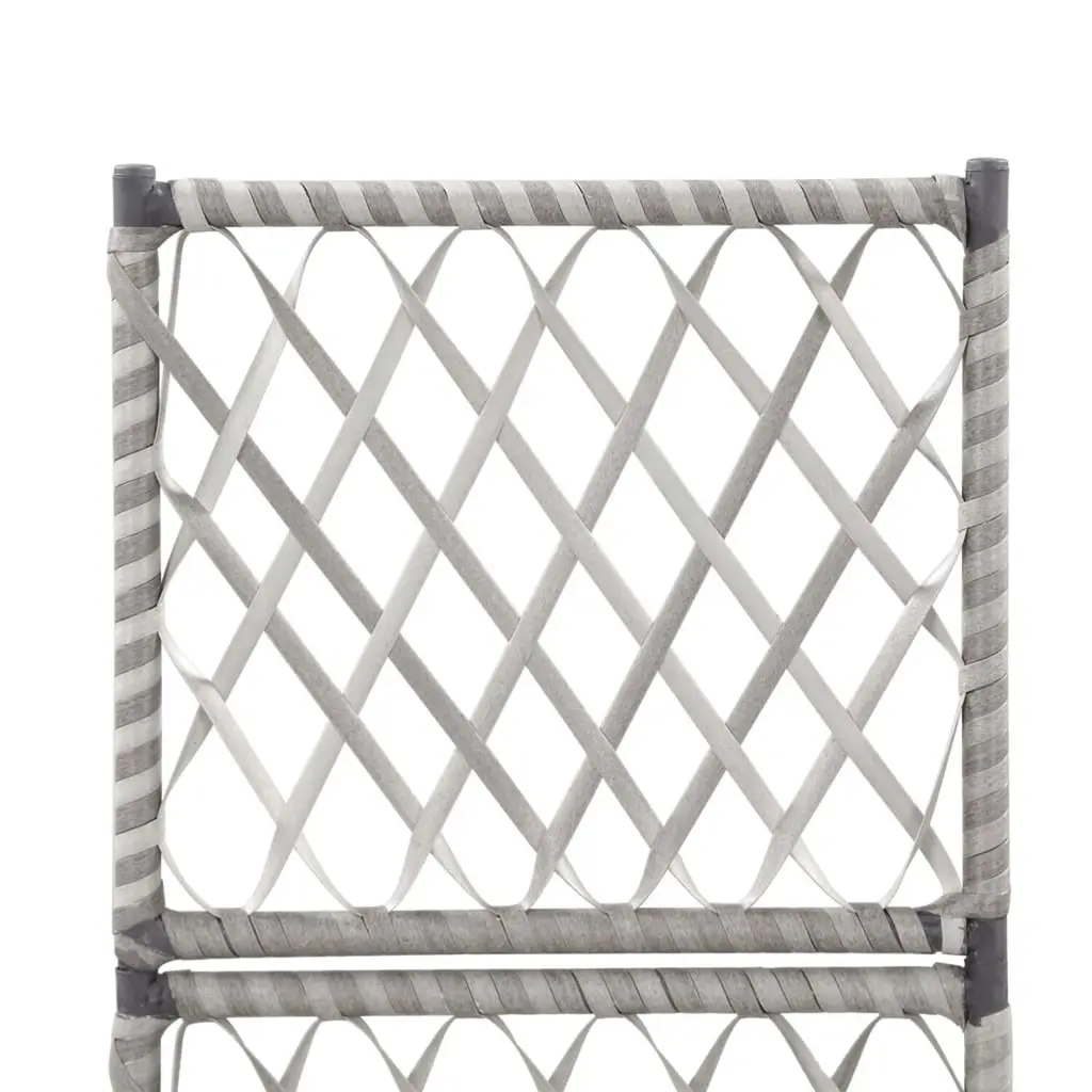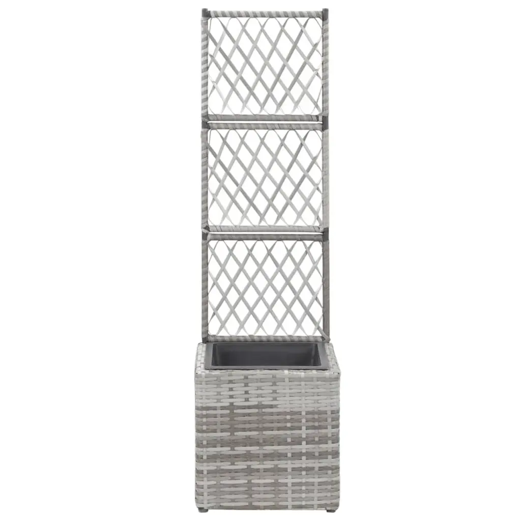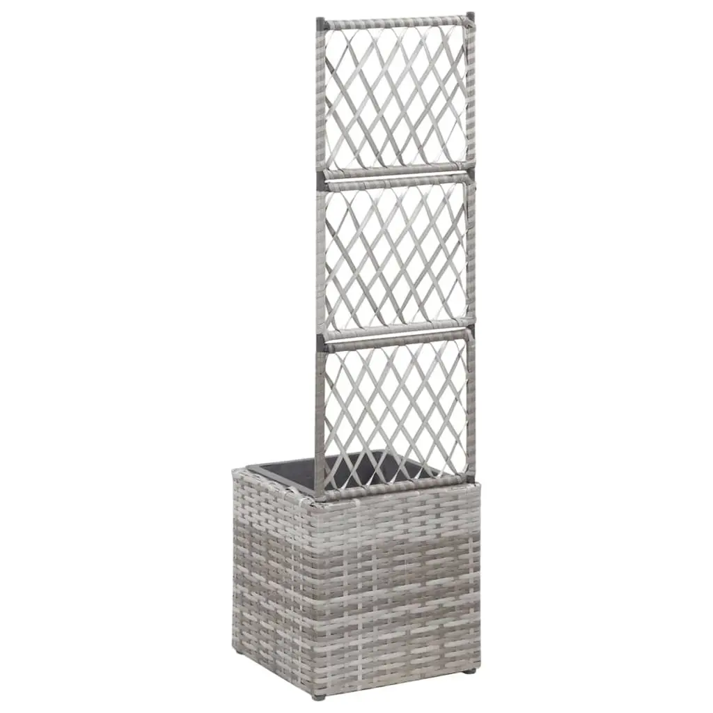 This trellis raised bed is a smart addition to any outdoor area, providing you a stylish way to plant and decorate. It's designed for balconies and small gardens, featuring a lovely grey finish that enhances outdoor spaces and accommodates a variety of plants. Durability: Made from weather-resistant poly rattan, this planter can handle outdoor conditions, ensuring your plants thrive in a safe space. Contemporary Aesthetic: The sleek matte finish offers a modern design that suits any outdoor decor, making it a great choice for stylish gardening. Versatile Functionality: Use it as a planter or a decorative piece; this trellis can support climbing plants while looking pretty, giving you both practicality and beauty. Compact Dimensions: Measuring 11.8 in x 11.8 in x 42.1 in, this raised bed is just the right size for small areas, allowing for creative planting without hogging too much space. Easy Maintenance: Keeping it clean is a breeze; just wipe it down with a damp cloth to keep your planter looking bright and shiny.