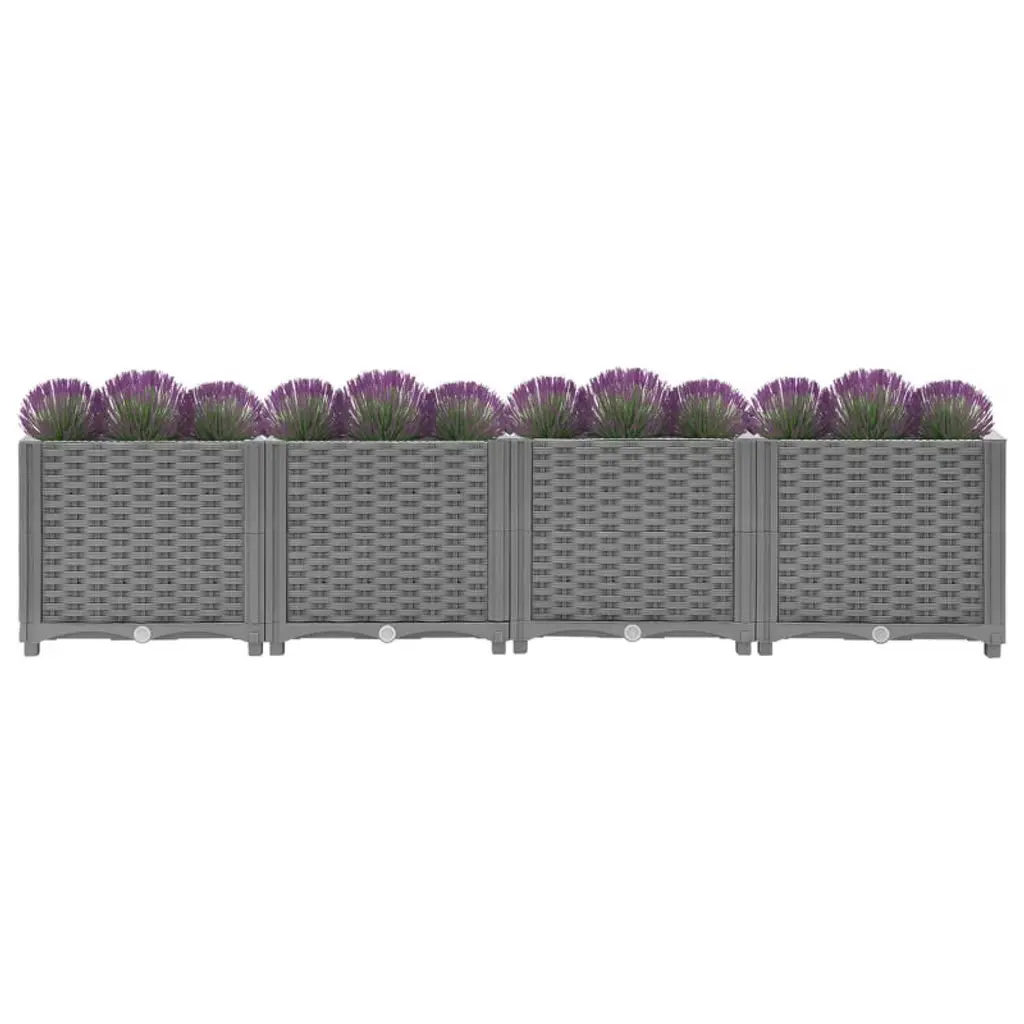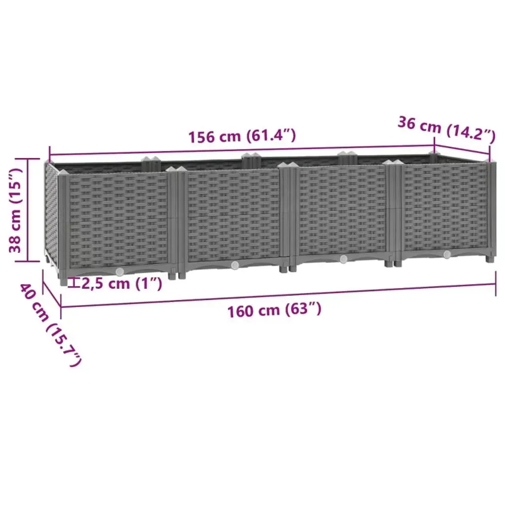 Vidaxl Raised Bed Light Grey Polypropylene Medium Planters - 63" X 15.7" X 15" Light Gray