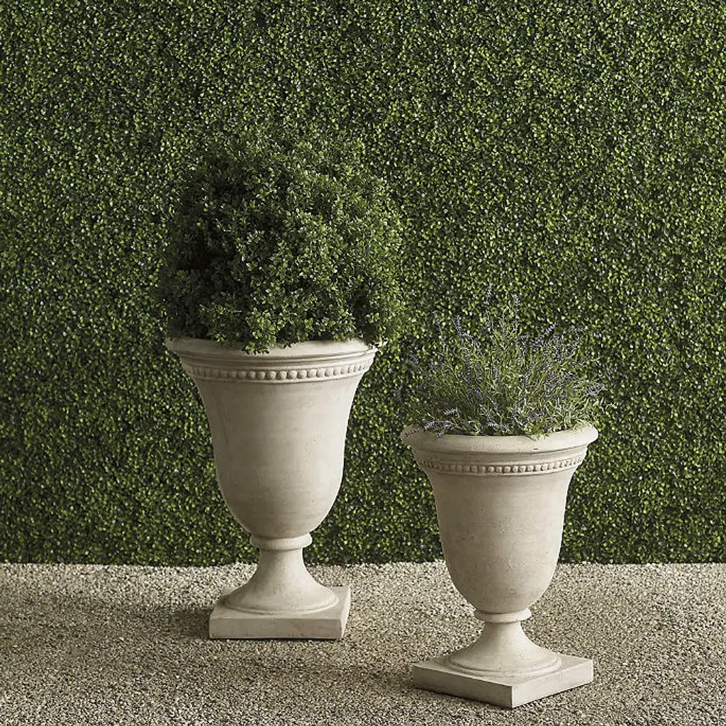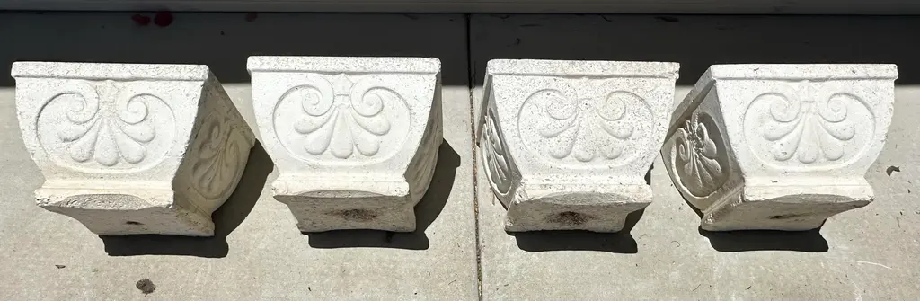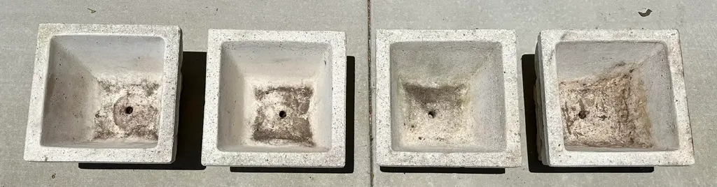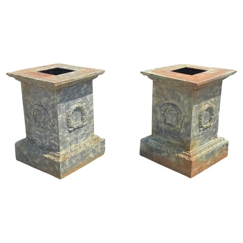 Vintage 1950 Square Fleur De Lis Stone Aggregate Concrete Garden Planters - Set Of 2
