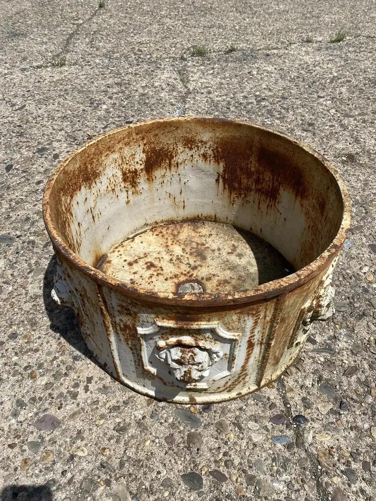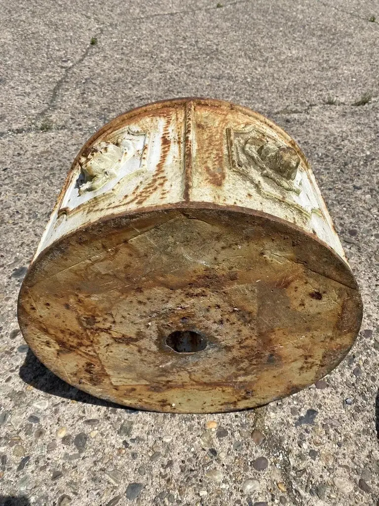 Vintage English Regency Cast Iron 20" Round Lion Heads White Garden Planter Pot