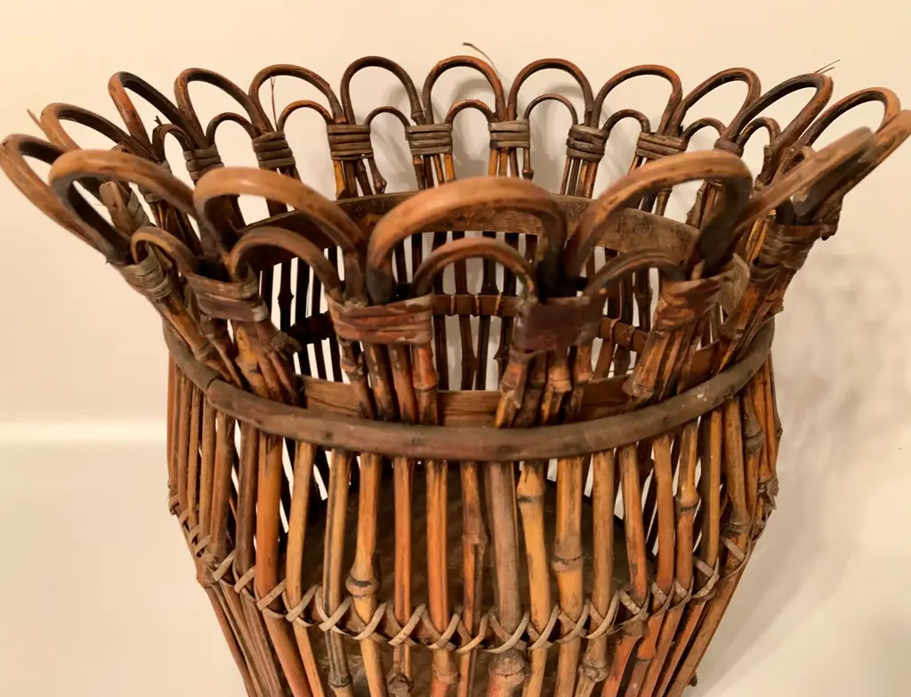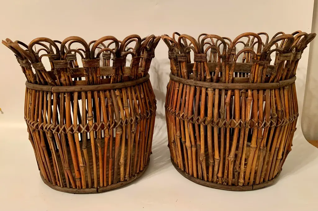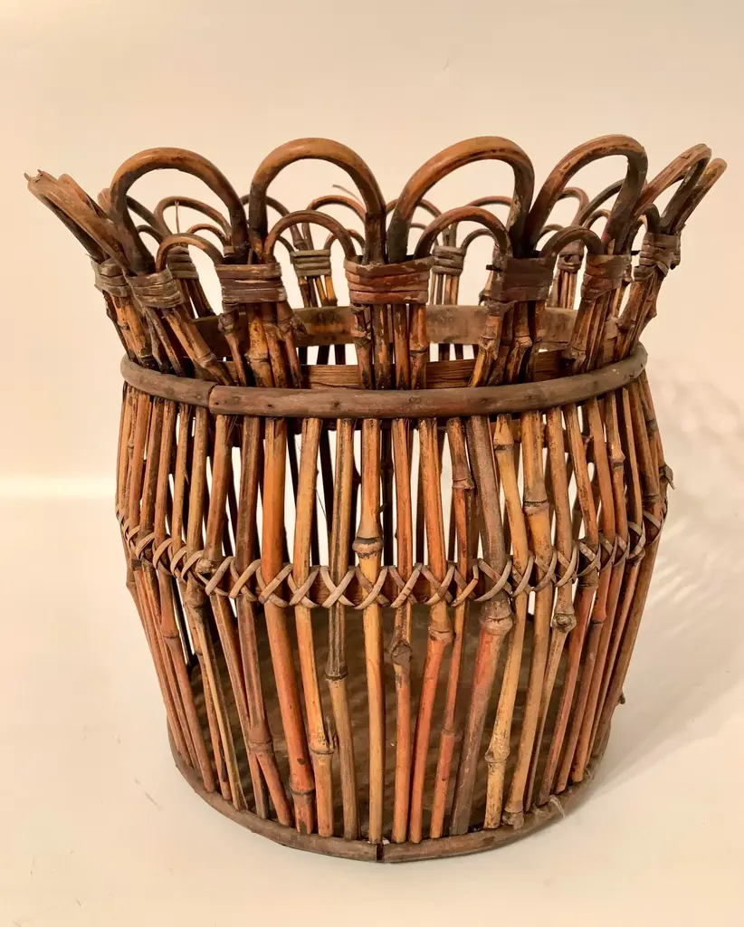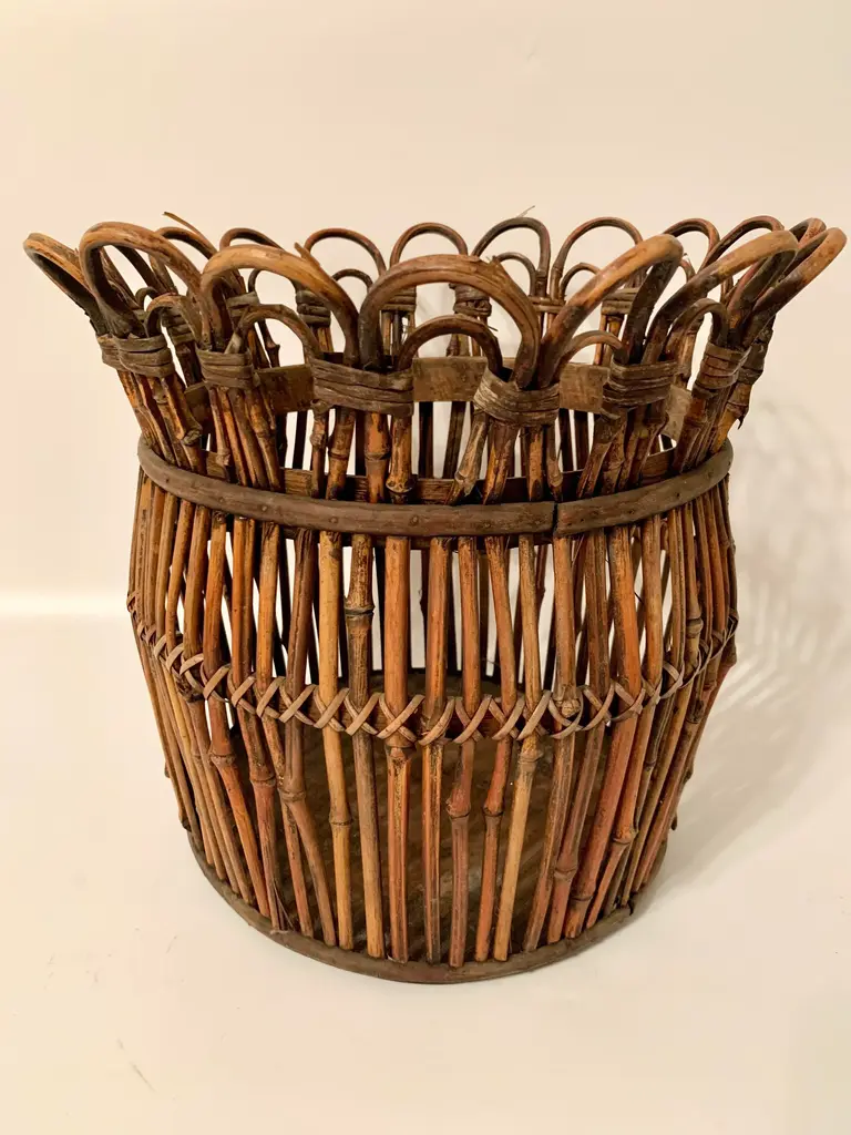 Vintage French Boho Chic Bamboo Planter (Available Pair)