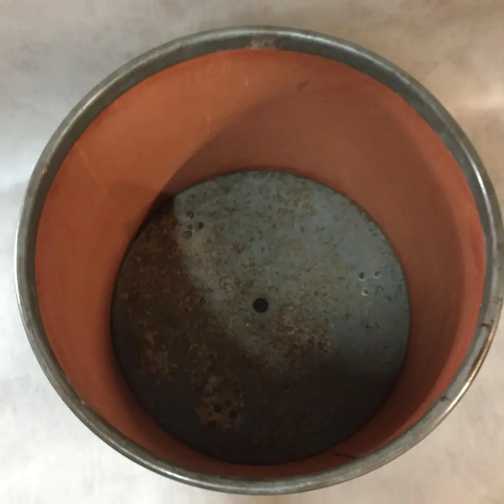 This vintage cardboard planter is riveted in the manner of Louis Vuitton and dates to approximately 1920. Labeled by Maker,This piece has an attribution mark, I am sure that it is completely authentic and take full responsibility for any authenticity issues arising from misattribution