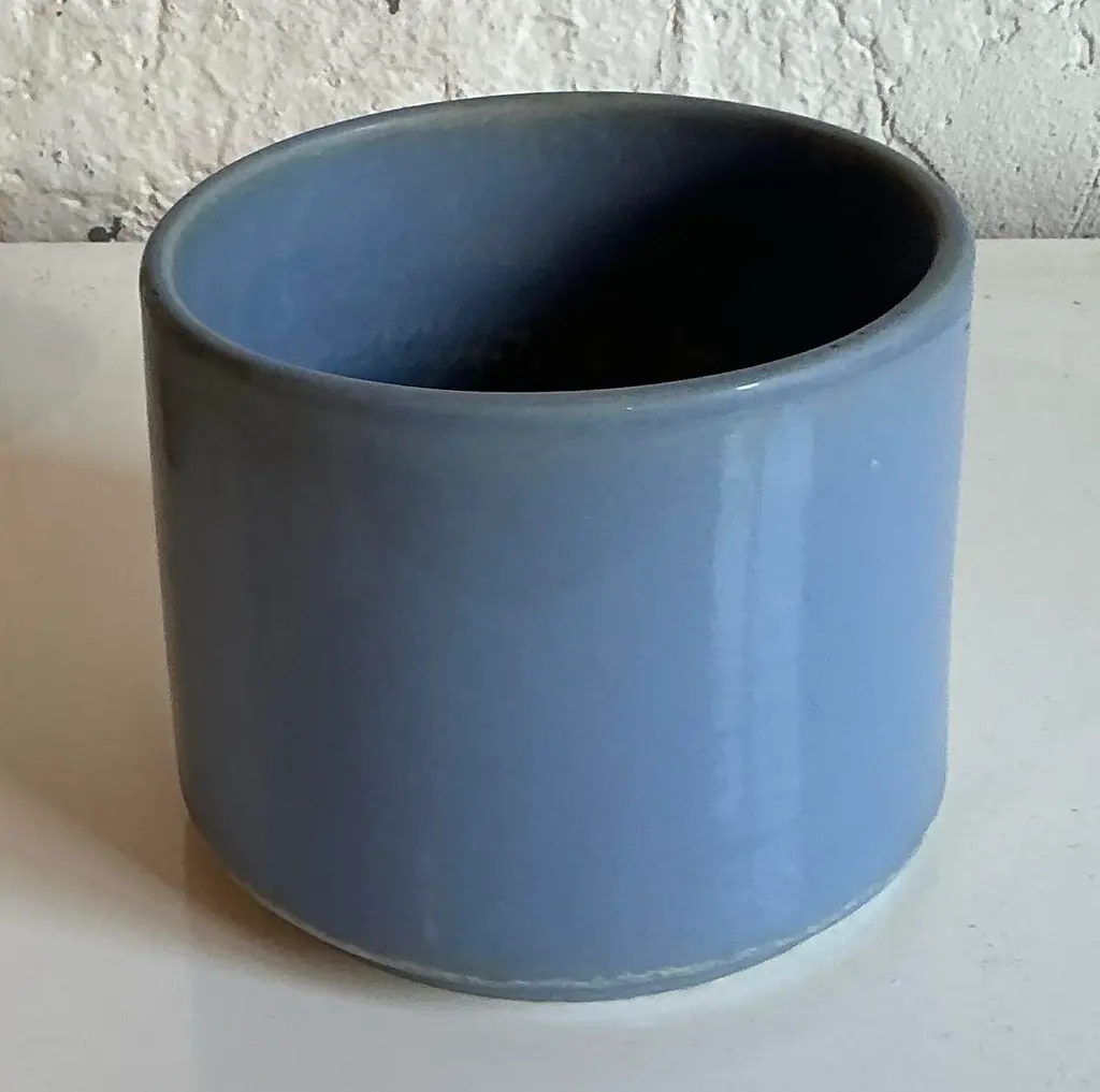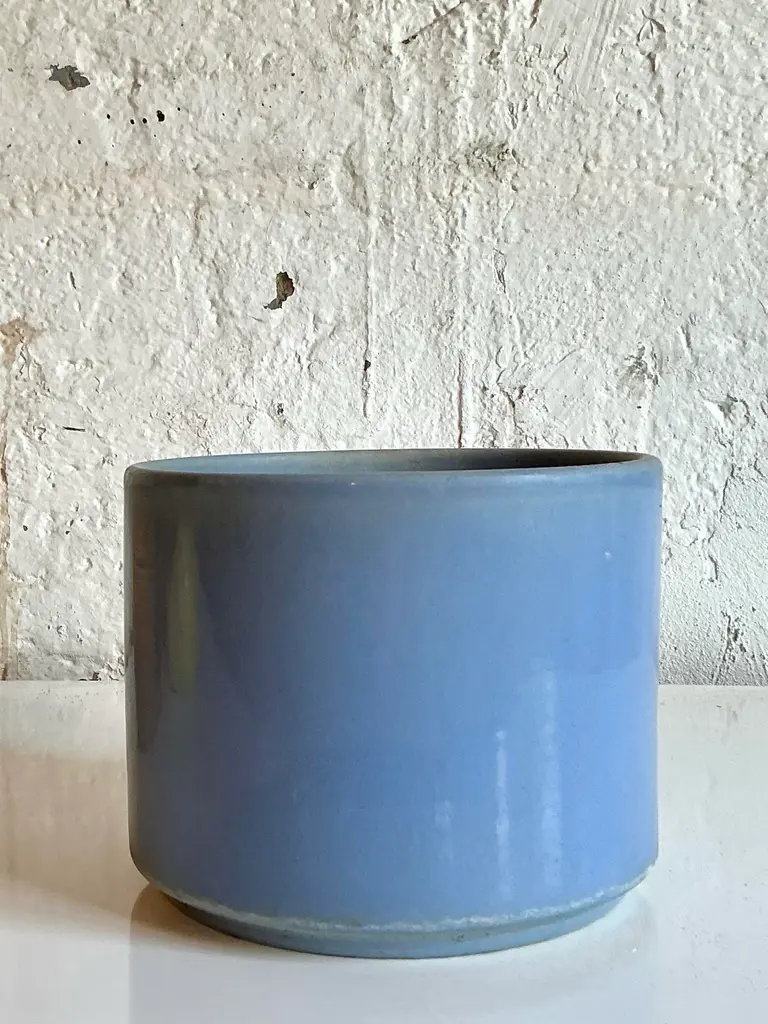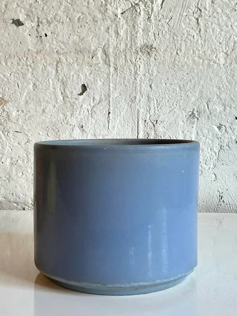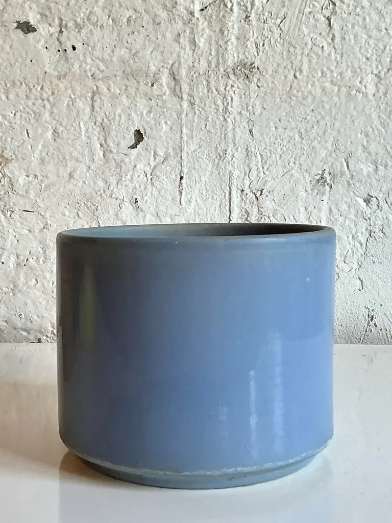 Discover the understated elegance of Mid-Century Modern design with this authentic Vintage Gainey Ceramics C8 pottery planter. Hailing from the renowned La Verne, California, studios, this cylindrical planter embodies Gainey's signature aesthetic: clean lines, robust craftsmanship, and a captivating, muted glaze. The rare lavender-periwinkle hue is truly enchanting, offering a subtle pop of color that is both sophisticated and versatile. Perfect for showcasing your favorite houseplant, organizing essentials in a stylish office, or serving as a standalone sculptural vessel, this piece is a testament to the enduring appeal of quality American pottery and an essential acquisition for collectors and interior designers seeking genuine MCM charm. This iconic Gainey C8 planter is in great vintage condition, displaying minor scuffs and blemishes appropriate to its age and use, which contribute to its authentic character. Measuring approximately 8" W x 8" D x 7" H, its compact yet substantial form makes it an ideal addition to a bookshelf, credenza, or desk. Its timeless design seamlessly integrates with a variety of decor styles, including Mid-Century Modern, California Modern, Minimalist, Scandinavian, and Bohemian interiors. Don't miss the opportunity to own a piece of ceramic history; bring this beautiful and functional vintage Gainey planter into your home today.