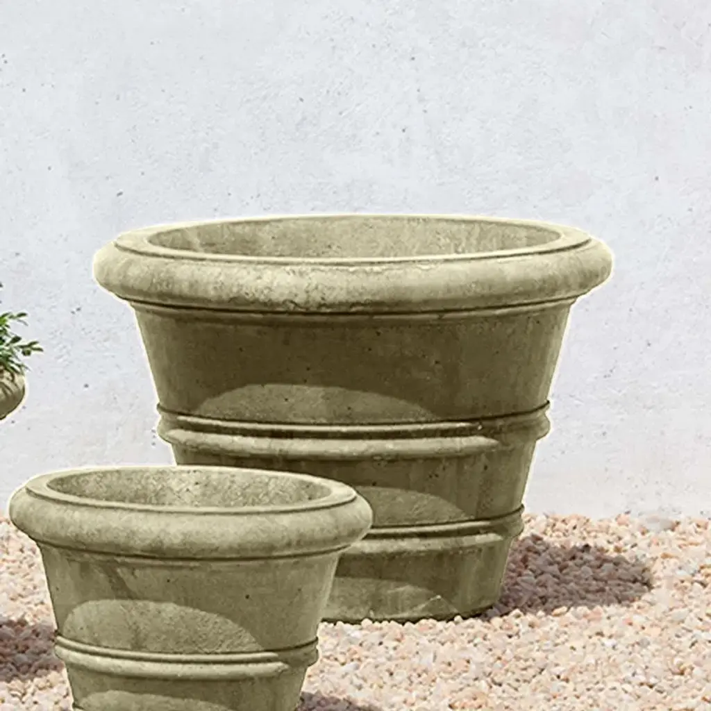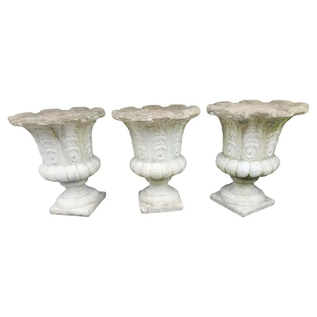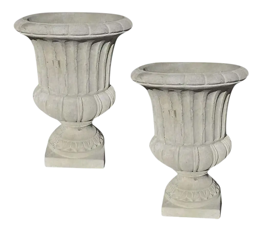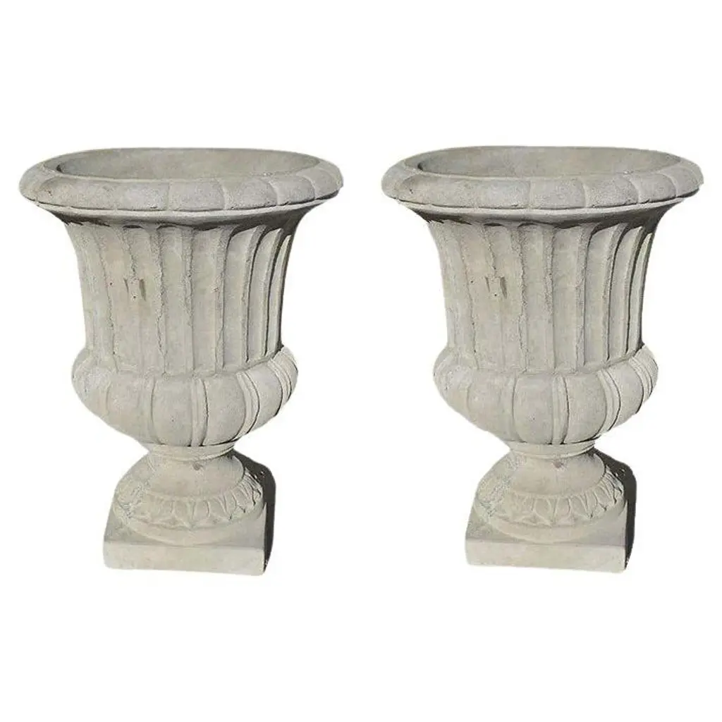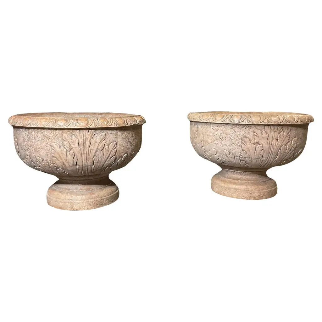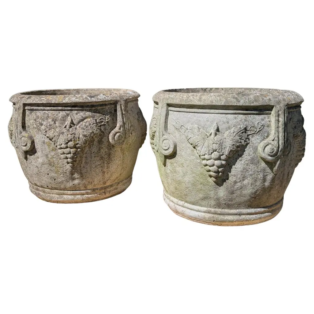 Vintage Pair Of Mid-Century Cast Stone Planters With Rosette Motifs