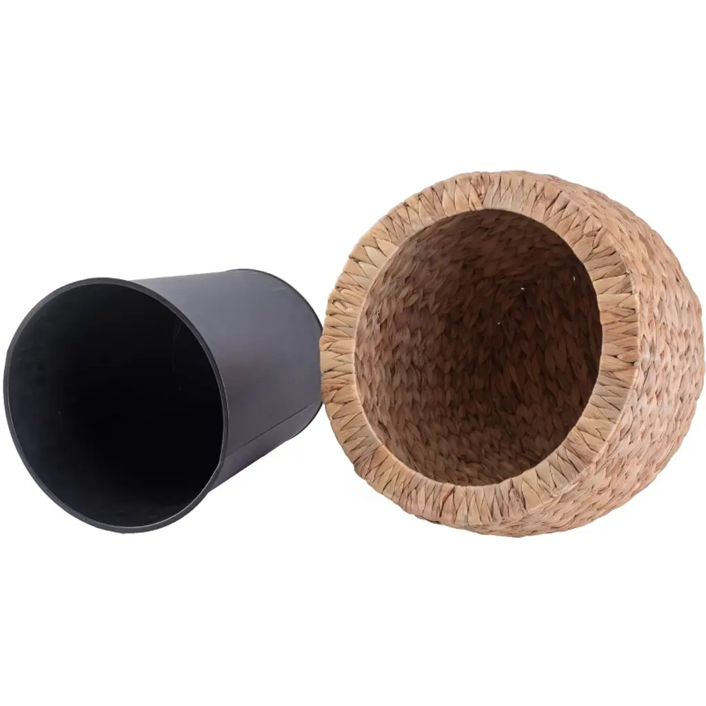 Create a greener home whether by planting herbs, veggies, and flowers in this unique water hyacinth planter. Water Hyacinth exterior offers a rustic touch to you home planting and durable metal interior pot provides secure base for your sprouts. Ideal to use in entryways, doorways, this planter will welcome botanical life into any area placed.