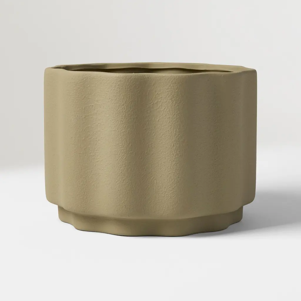 Its wavy shape adds fun style to a modern home. Built from durable ceramic. Suitable for indoor and outdoor use. Drainage holes protect roots from excess water.