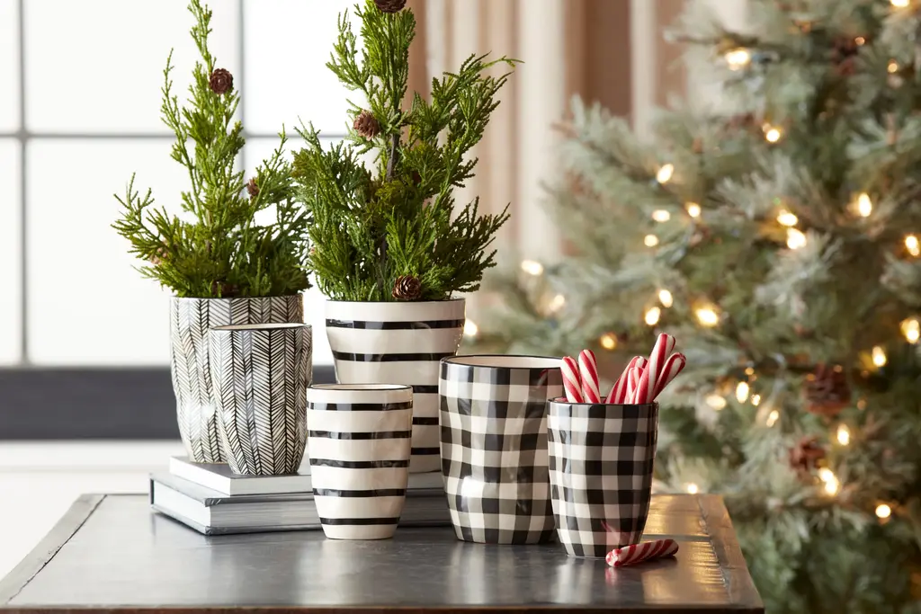 Expand your indoor garden with this beautiful set of Decorative Pots. Featuring three assorted designs and two sizes per design, this set of six pots is a great way to display your indoor succulents. The glazed finish paired with the black and ivory toned pattern is the perfect combination to create a stunning display. Complete the look by adding a real or faux plant to each pot. Featured in Melrose International's Simple Country collection.