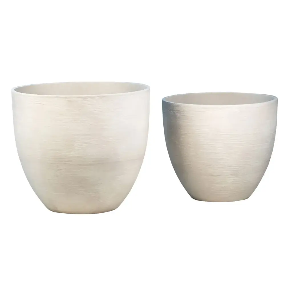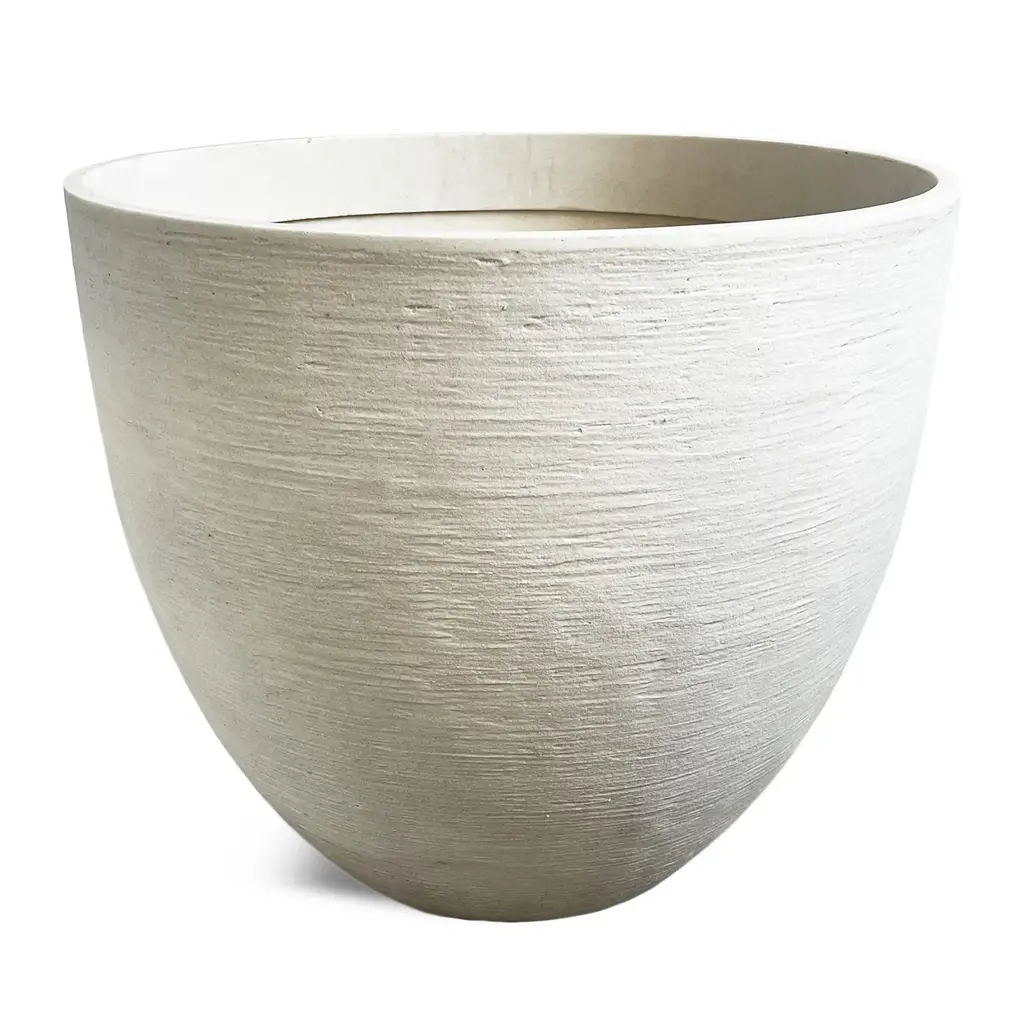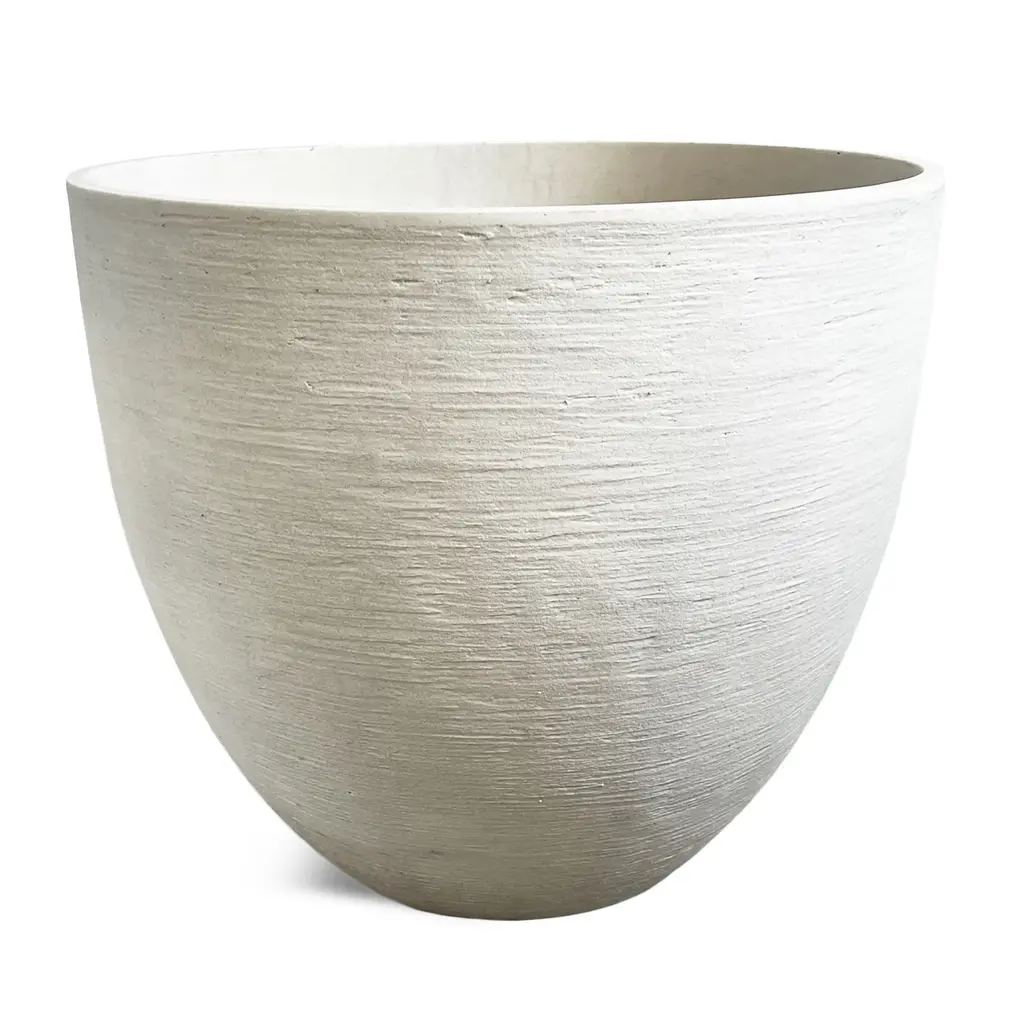 Modern outdoor planter with the look of modern cement without the weight. Easy to use and move light weight resin composite material in beautiful fresh white. Each sold individually, medium size is sold on a separate listing. Drainage hole is included.