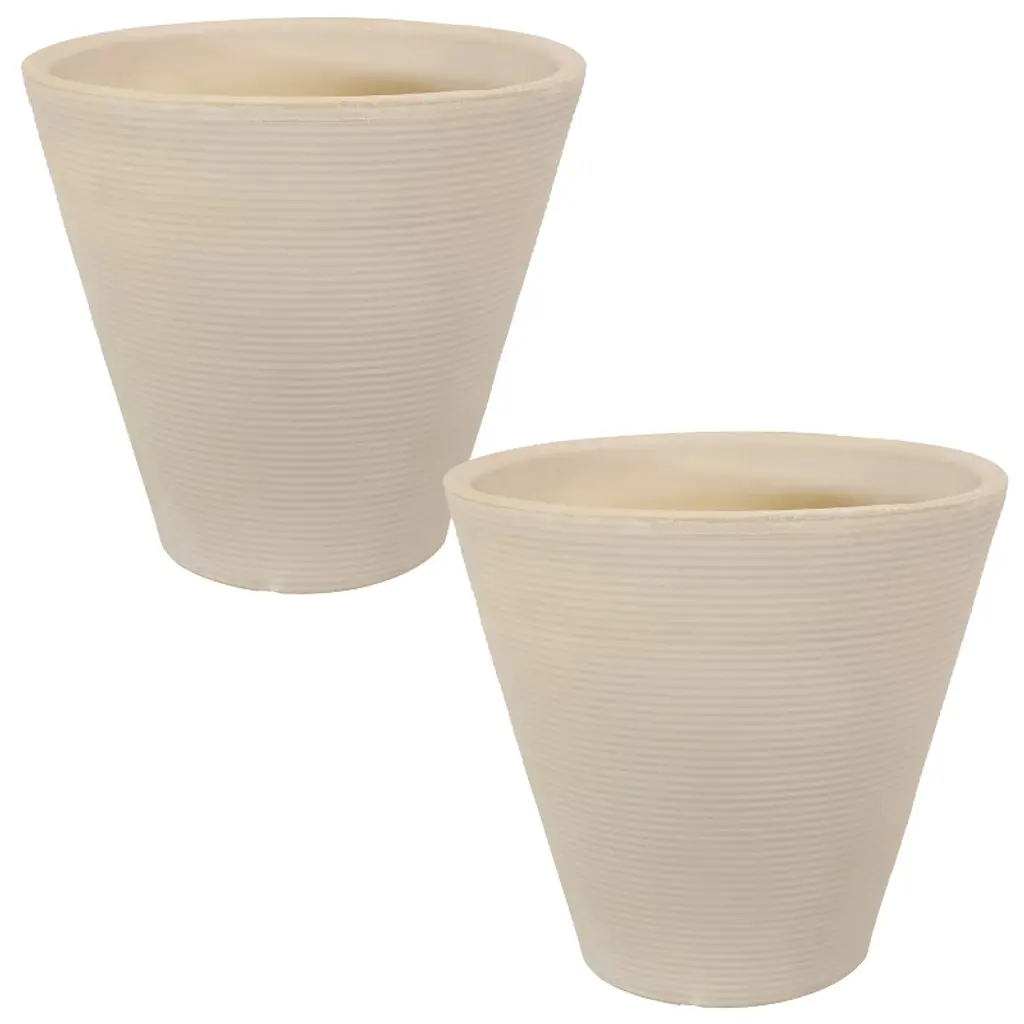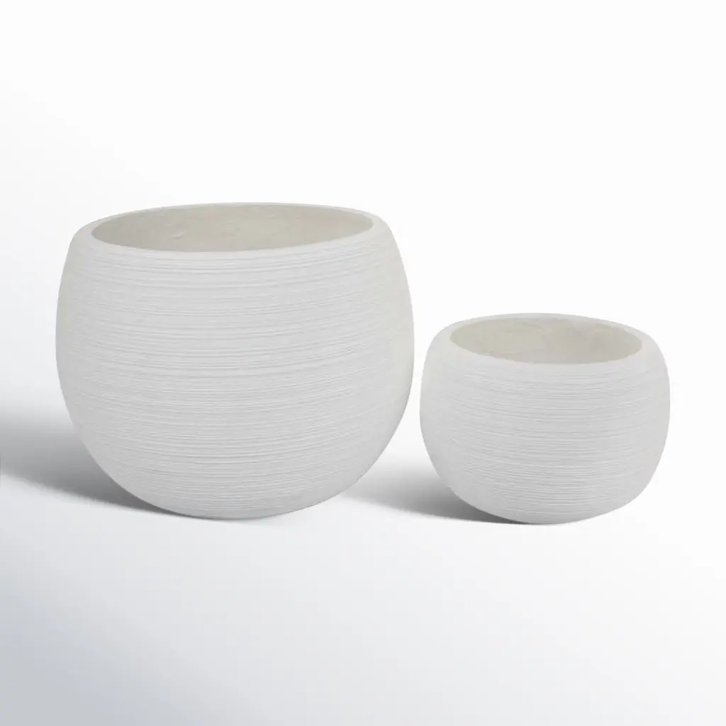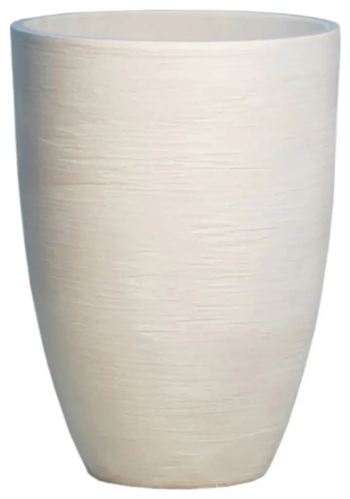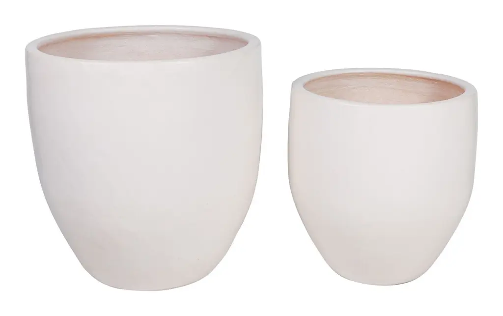 Modern outdoor planter with the look of modern cement without the weight. Easy to use and move light weight resin composite material in beautiful fresh white. Drainage hole is included. Opening at top measures 14". Each pot may in exact finish, natural textures, and slight imperfections. Each sold individually.