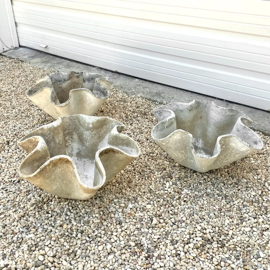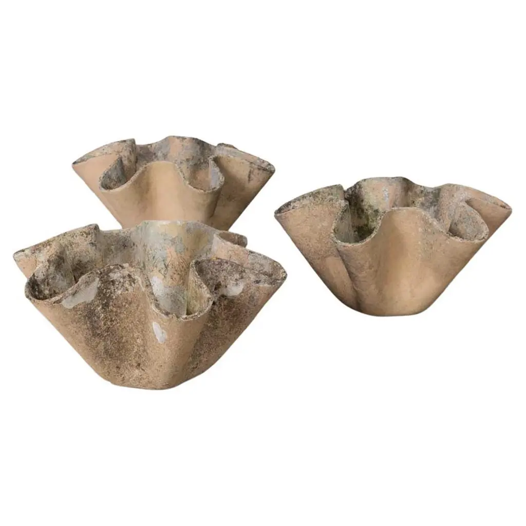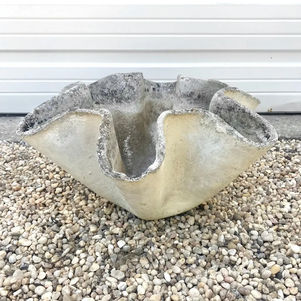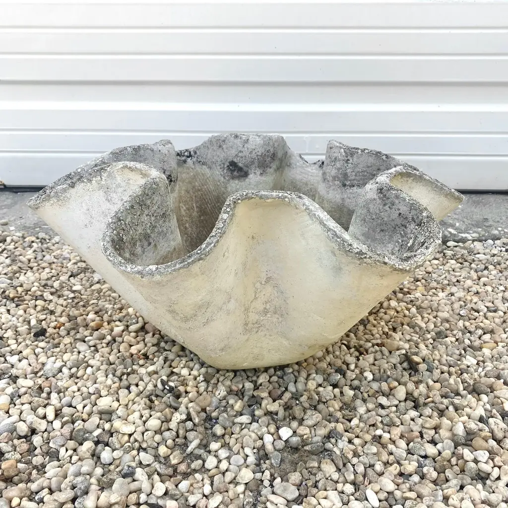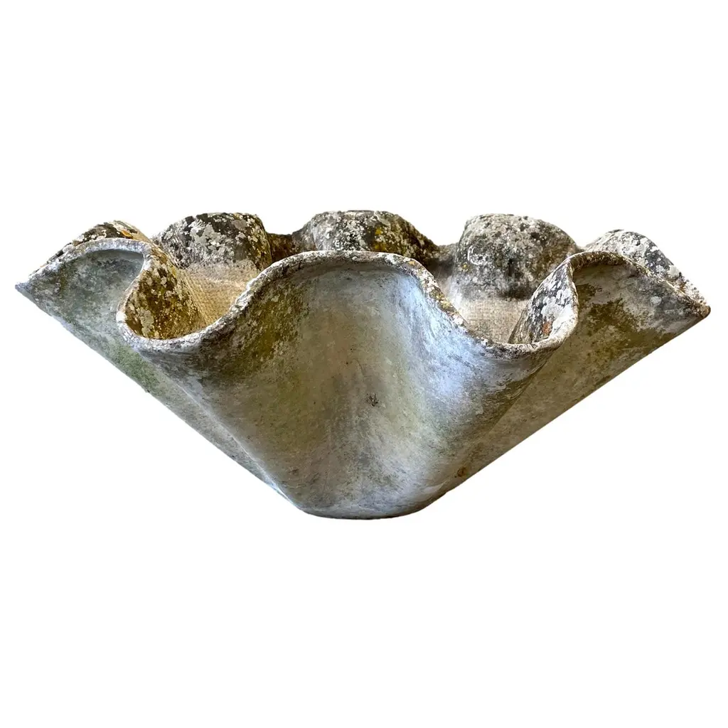Dive into summer with these gorgeous clamshell planters. Designed by the iconic Willy Guhl, their biomorphic silhouettes are straight off the sea floor. Each handmade planter is unique, with subtle variations in the modulating forms, patina, and number of drainage holes. 3 available. Priced individually.Planter 1: images 3-8Planter 2: images 9-14Planter 3: images 15-20Located at our Southampton showroom.