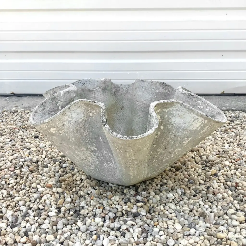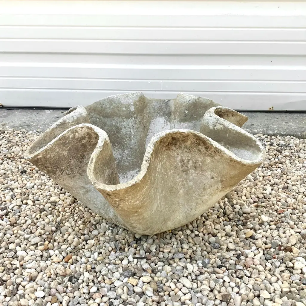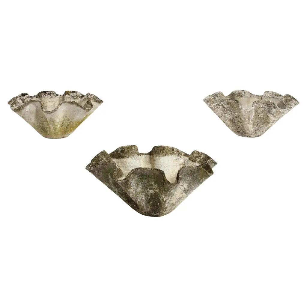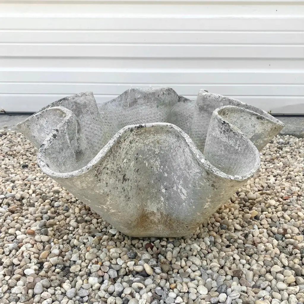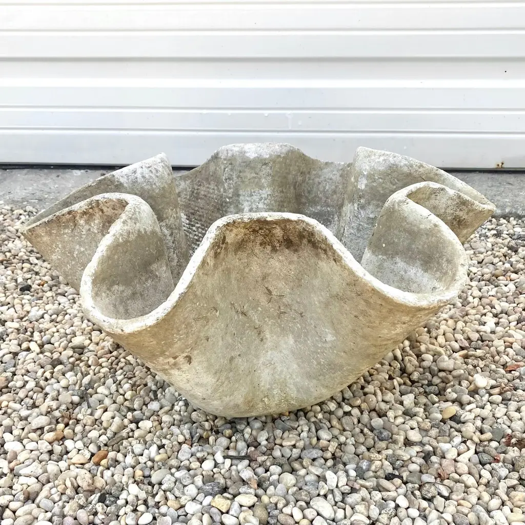 Dive into summer with these gorgeous clamshell planters. Designed by the iconic Willy Guhl, their biomorphic silhouettes are straight off the sea floor. Each handmade planter is unique, with subtle variations in the modulating forms, patina, and number of drainage holes. 3 available. Priced individually.Planter 1: images 3-8Planter 2: images 9-14Planter 3: images 15-20Located at our Southampton showroom.