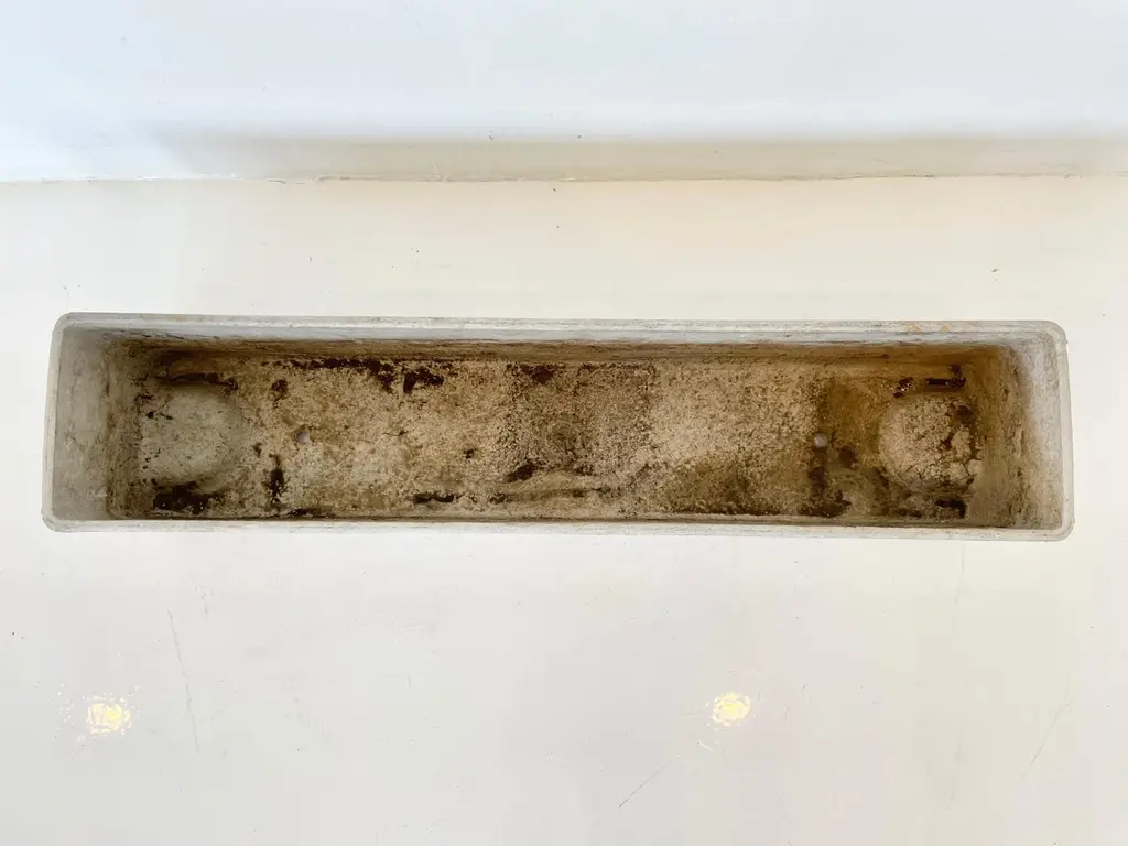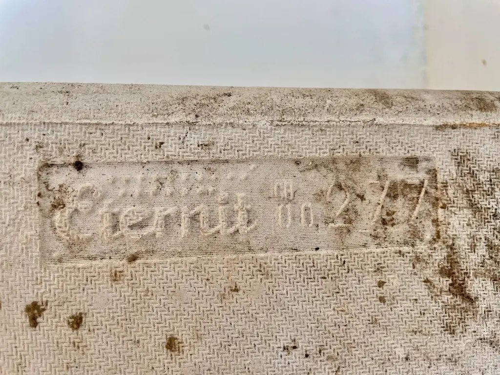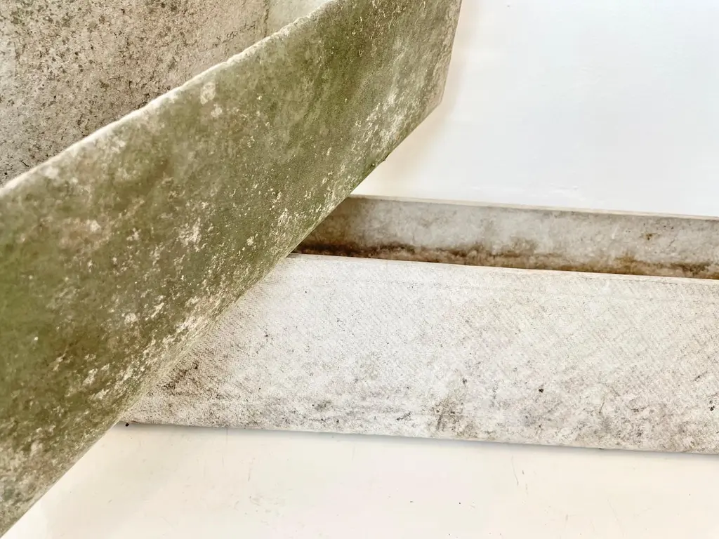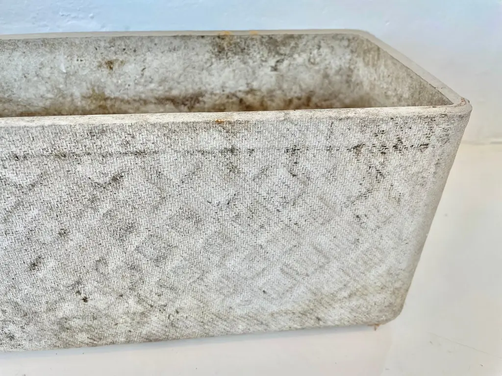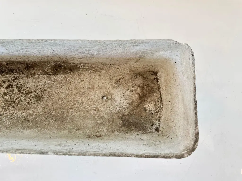 Concrete trough planters by Swiss architect Willy Guhl. Just under 32" long. Factory drilled drainage holes. Perfect depth for narrow spaces. 21 available. Priced individually.