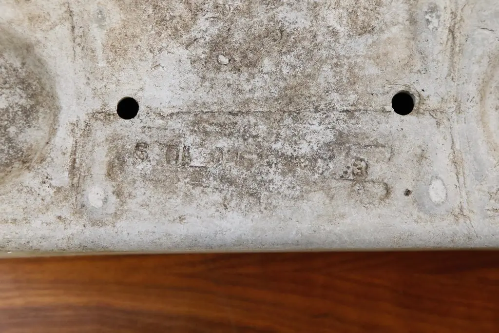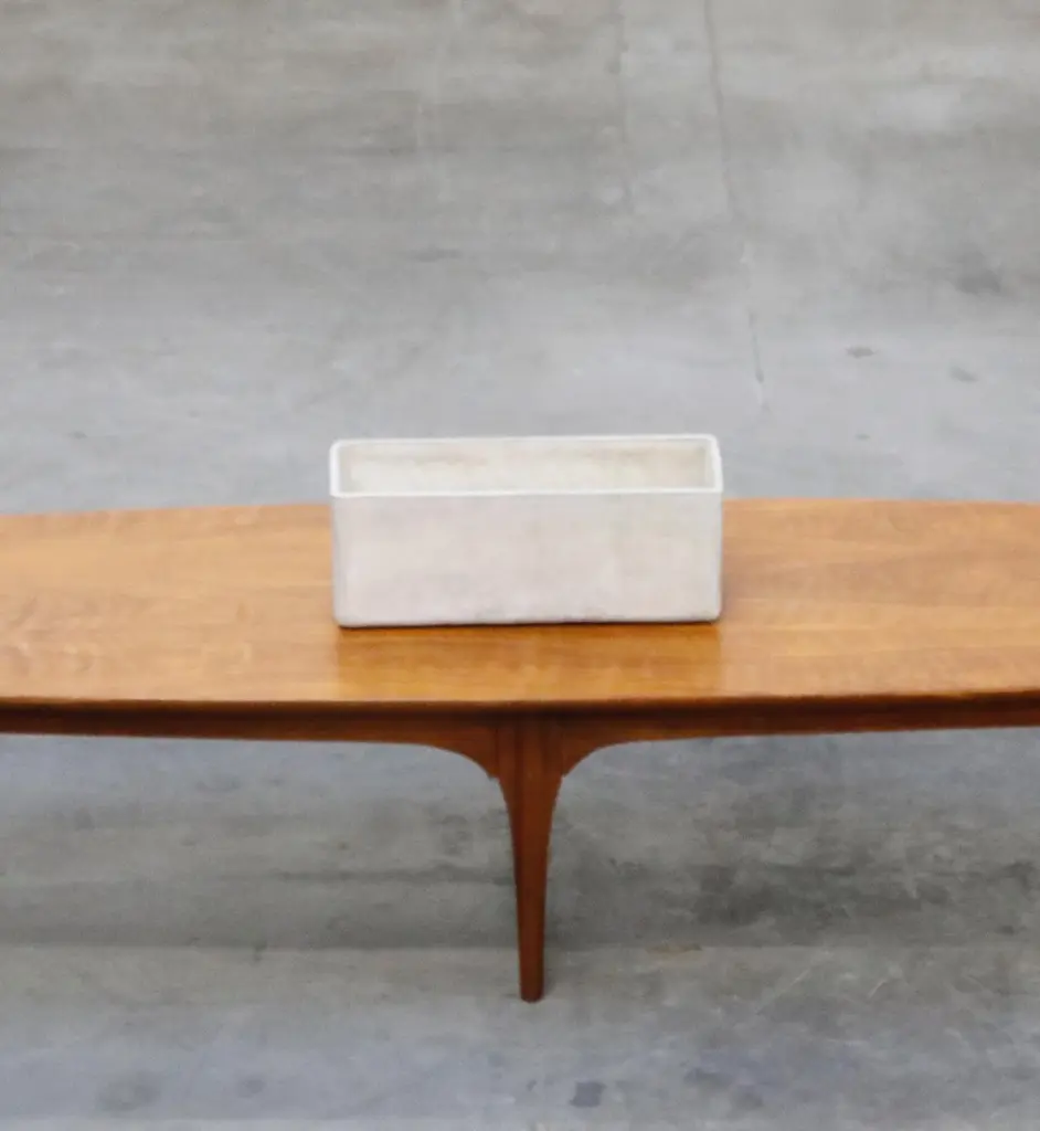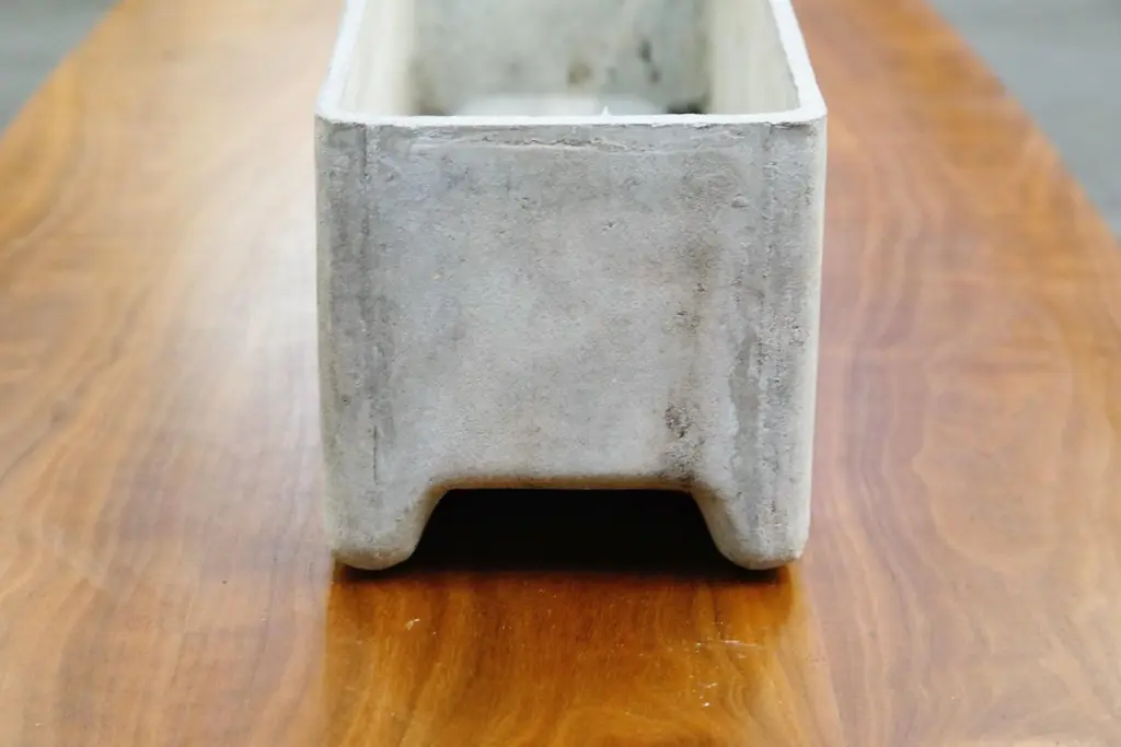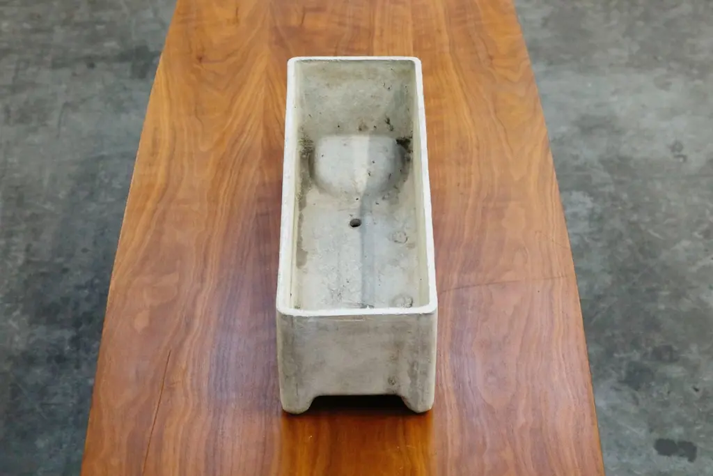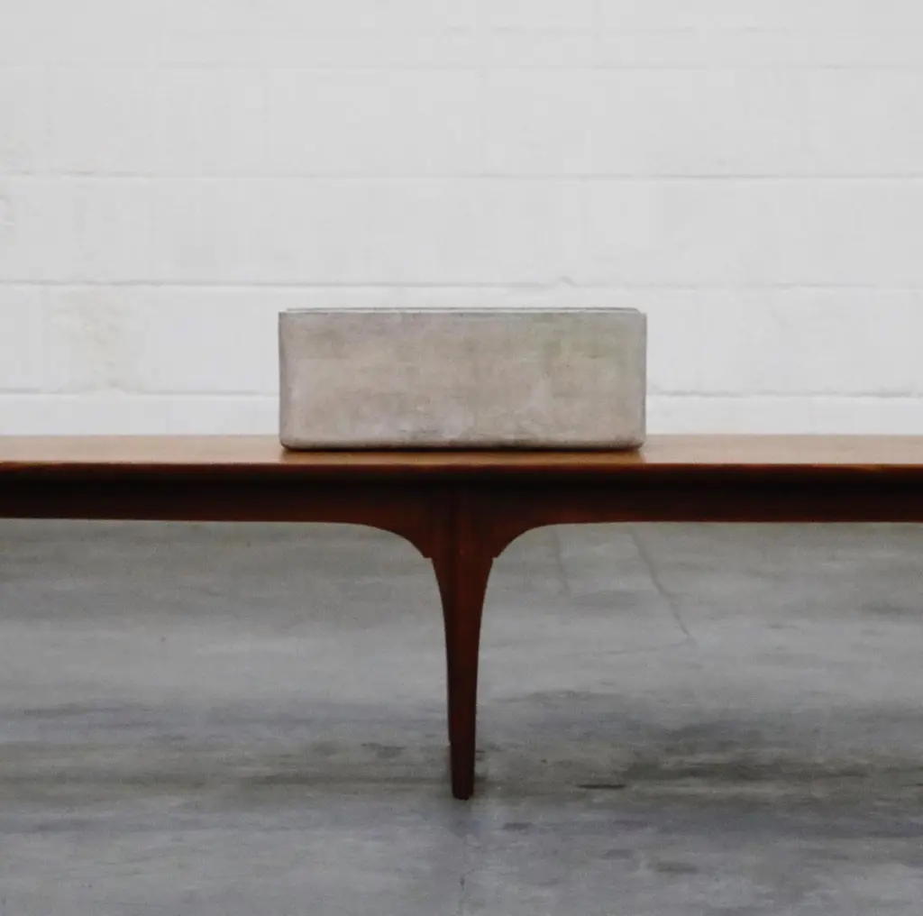 This designer on-trend architectural rectangular concrete planter is by Swiss architect Willy Guhl for Eternit, crafted in the 1970s Switzerland and signed and dated underneath. This special low-profile and rare long sized rectangle-shaped concrete planter has a patinated natural exterior finish and organic aging over decades of UK climate. Excellent planter size for a variety of various uses such as succulents, plants, weeping grass with the planter on a stand, balcony privacy hedge, or any other outdoor decorative use.Consider using this Willy Guhl Concrete Planter Pot in a Architectural, Postmodern, Mid-Century Modern, Scandanavian Modern or Danish Modern garden, yard or penthouse apartment balcony but could also look fantastic in a Contemporary or Zen / Minimalism setting. Also consider mixing it up in a Traditional, Transitional, Classical or Art Deco space with a splash of juxtaposition. Would also be an apt choice in a commercial project such as an outdoor hotel lobby lounge or members club, creative design studio or high-rise executive office balcony.Condition:Sturdy and structurally sound. Has beautiful antiquing and patina throughout from decades of organic aging which can include minor chipping, stains or other blemishes however this lightly distressed look is common, expected and desirable for these early production originals. Measurements:H 6" x W 15.75" x D 6"