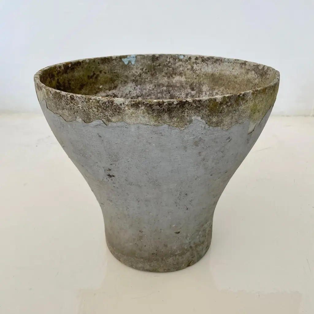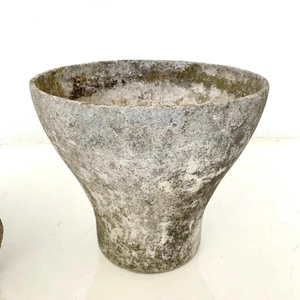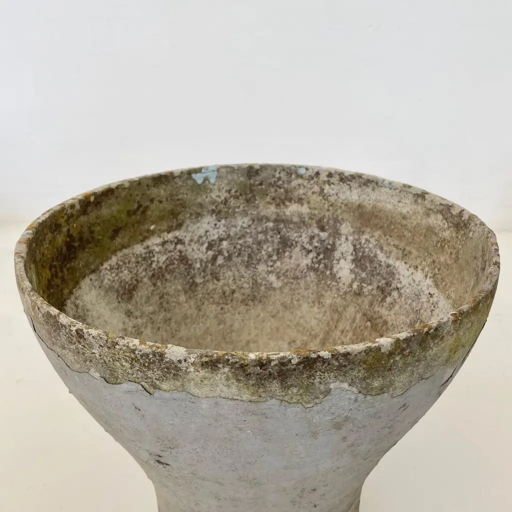 Unique concrete planter by Swiss architect Willy Guhl. Planter in the shape of a goblet or drinking cup. Excellent patina and coloring. Great scale. Two available. Priced individually.