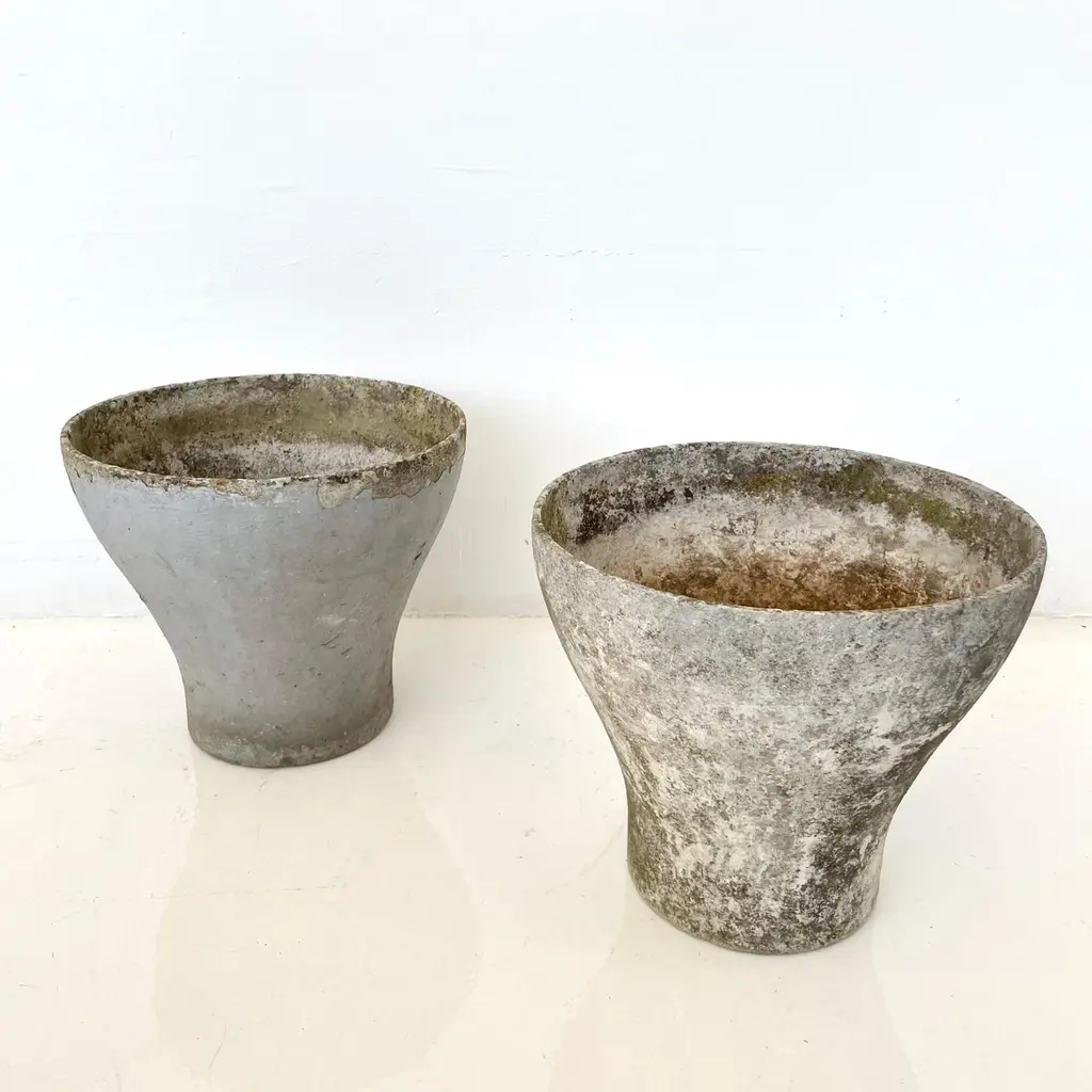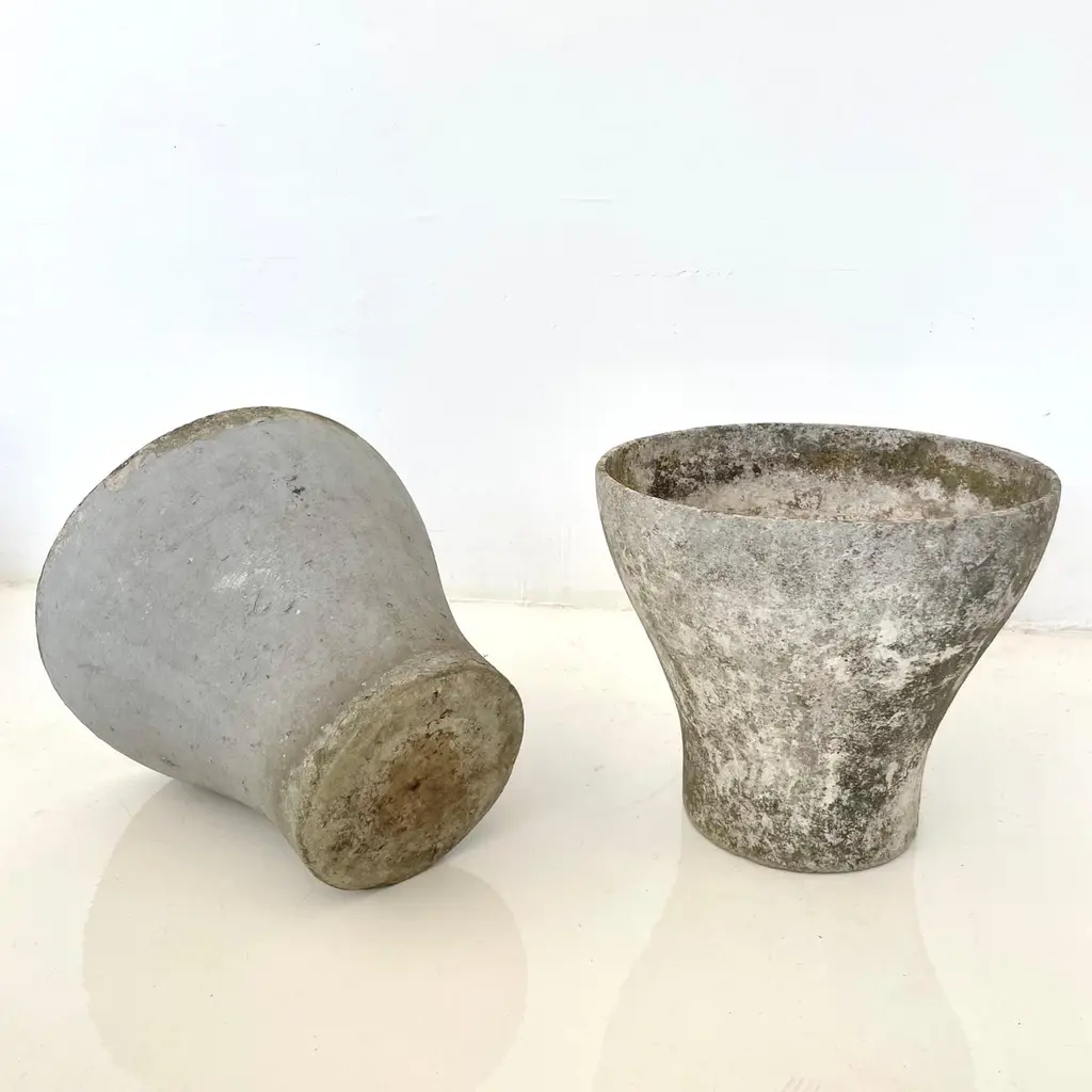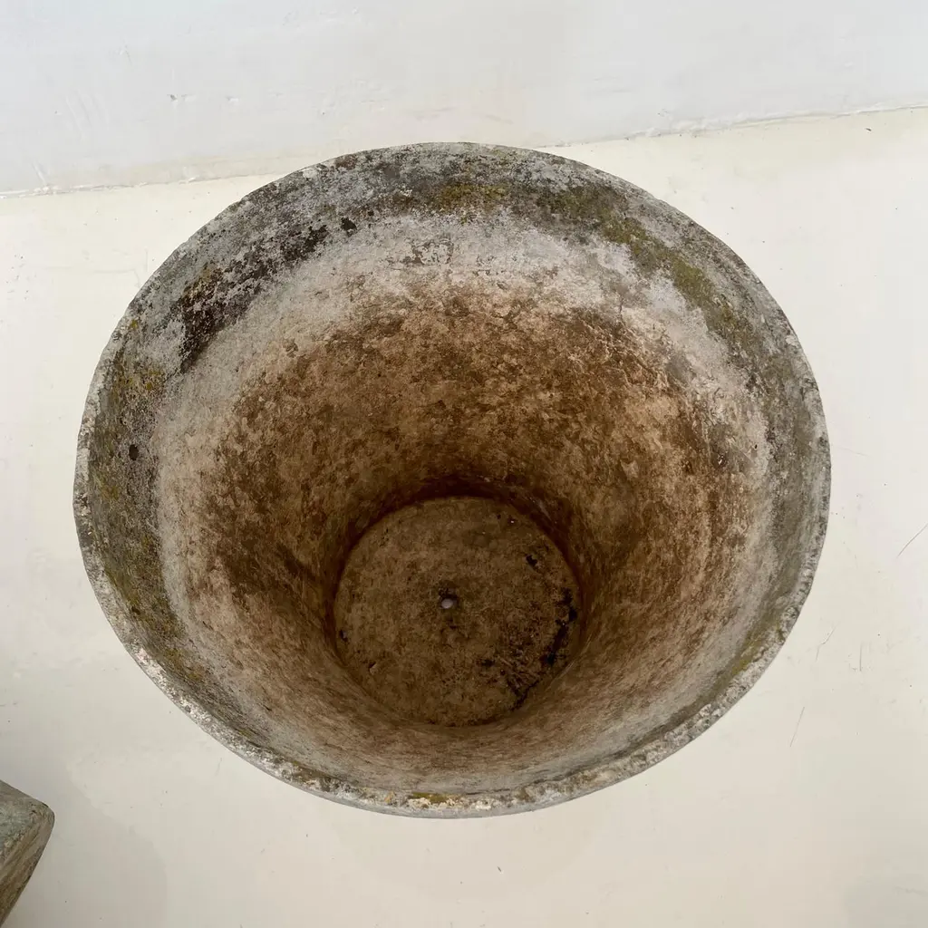 Unique concrete planter by Swiss architect Willy Guhl. Planter in the shape of a goblet or drinking cup. Excellent patina and coloring. Great scale. Two available. Priced individually.