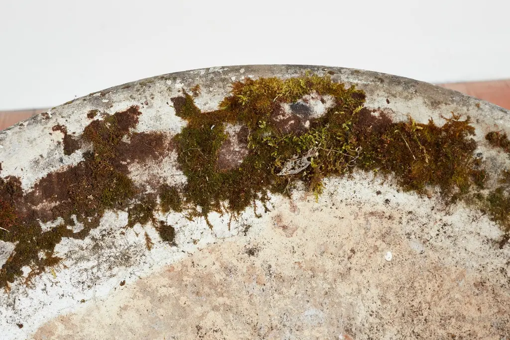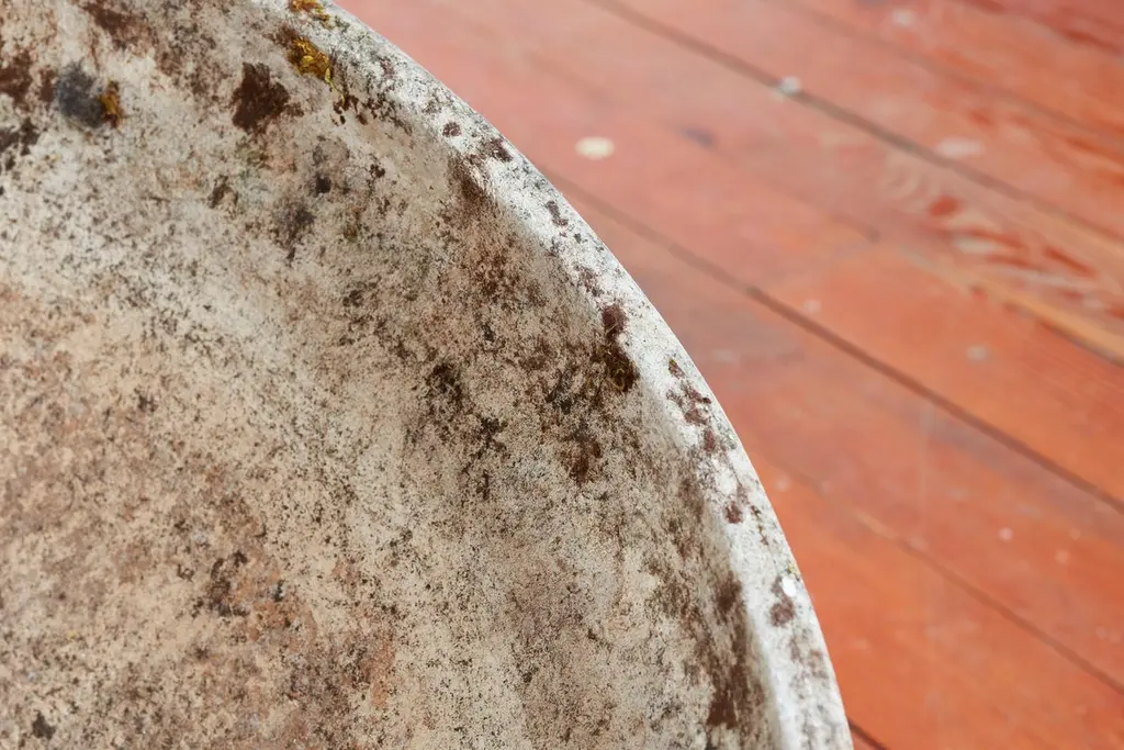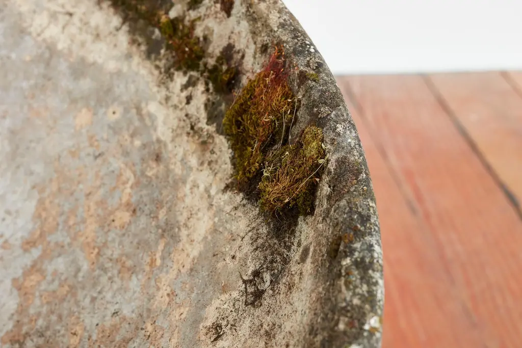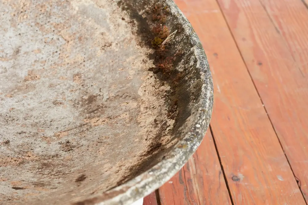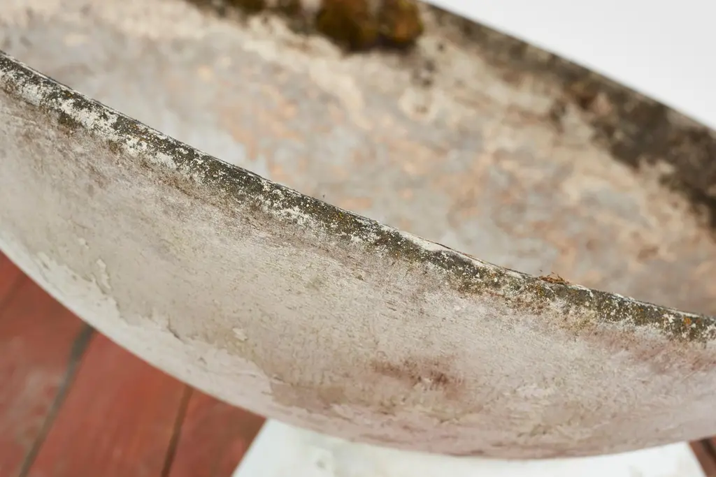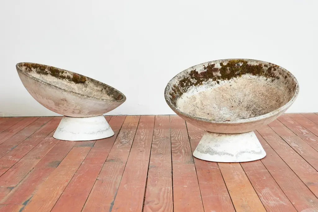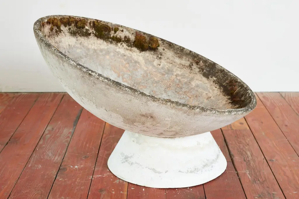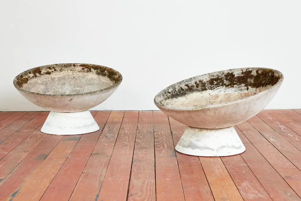 Willy Guhl low planters with shallow bowl that sits on matching base.Both planters have amazing patinasPriced individually.