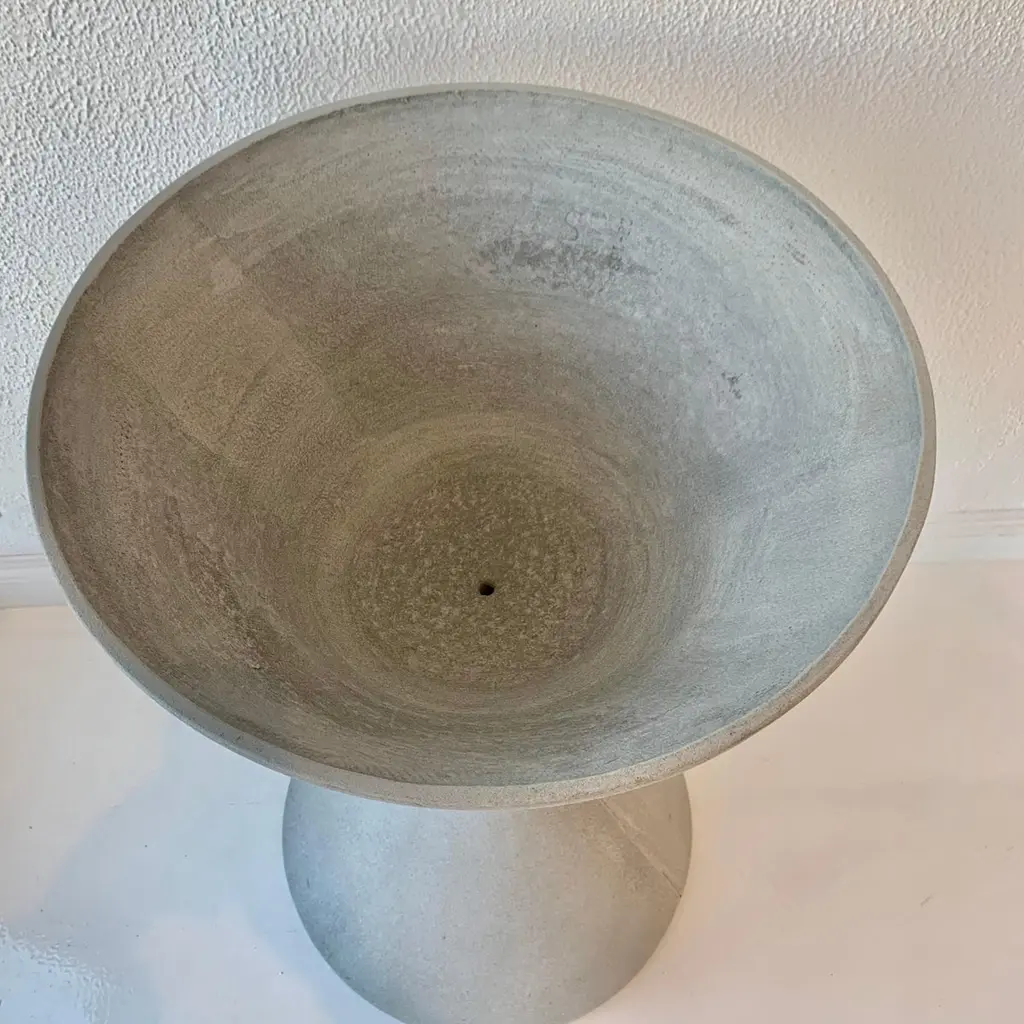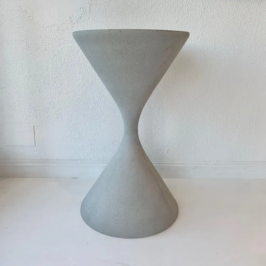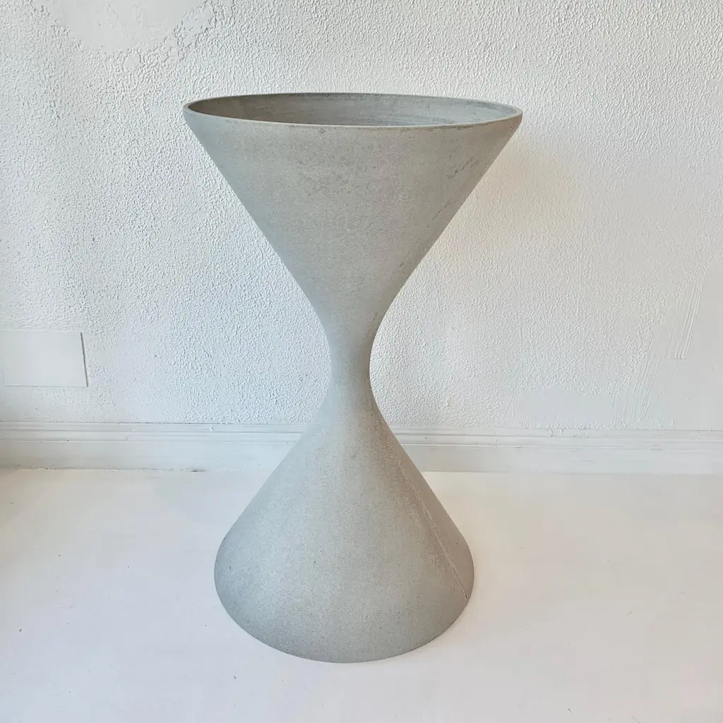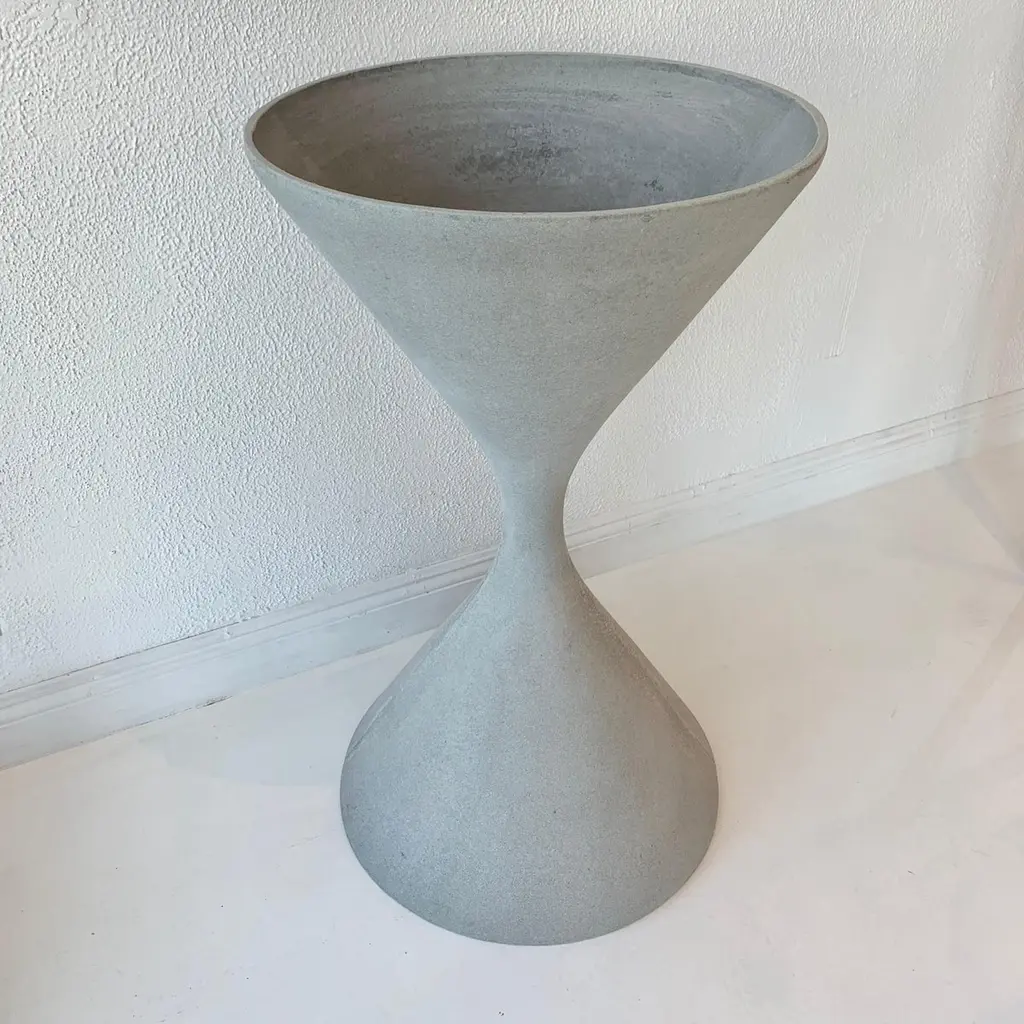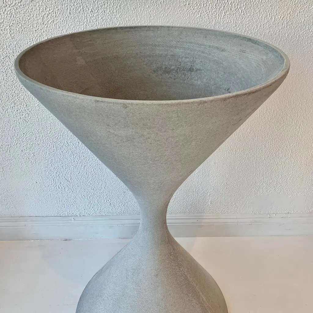 Massive hourglass planters by Swiss designer Willy Guhl. Newly produced. Largest size made by Willy Guhl. Handmade in the same factories as the vintage planters. Made of thin fibrous cement. Stunning piece of design. Stamped with factory date and serial numbers. Measures: 36”.