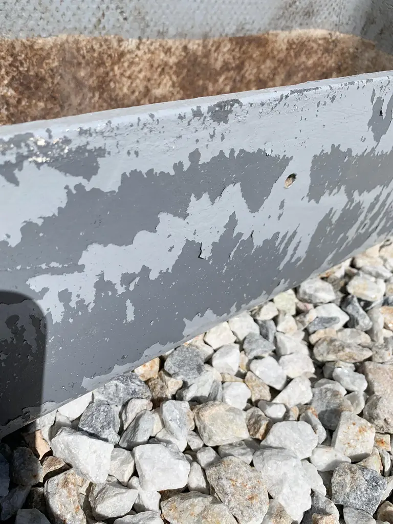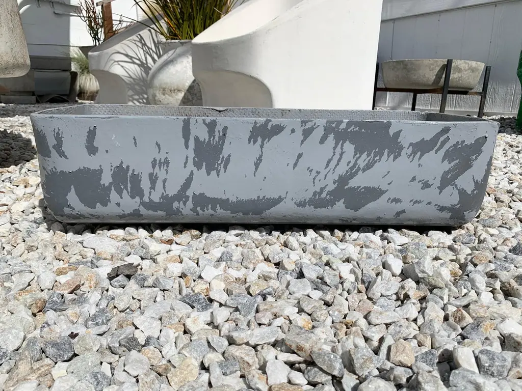 Fantastic set of 22 rectangular planters by Swiss architect Willy Guhl for Eternit. Painted years ago in greyish/blue and worn down by years of European winters. Good vintage condition. Very cool coloring and age. 22 available. Priced individually.