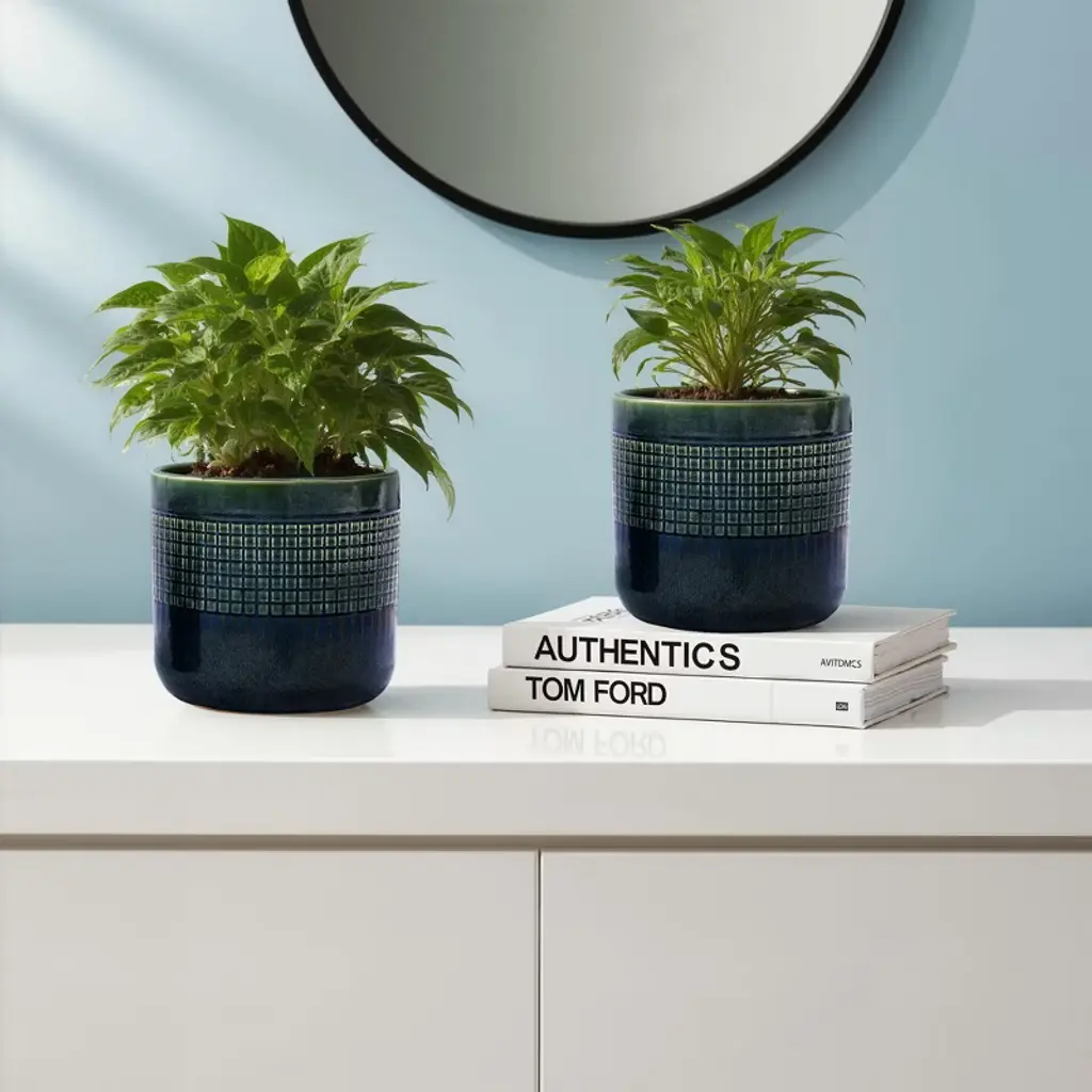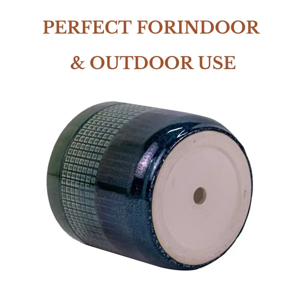 Wooakway 10" Dia Outdoor Indoor Ceramic Planter Pot Decorative Planter With Drainage Hole Patio Flower Pot