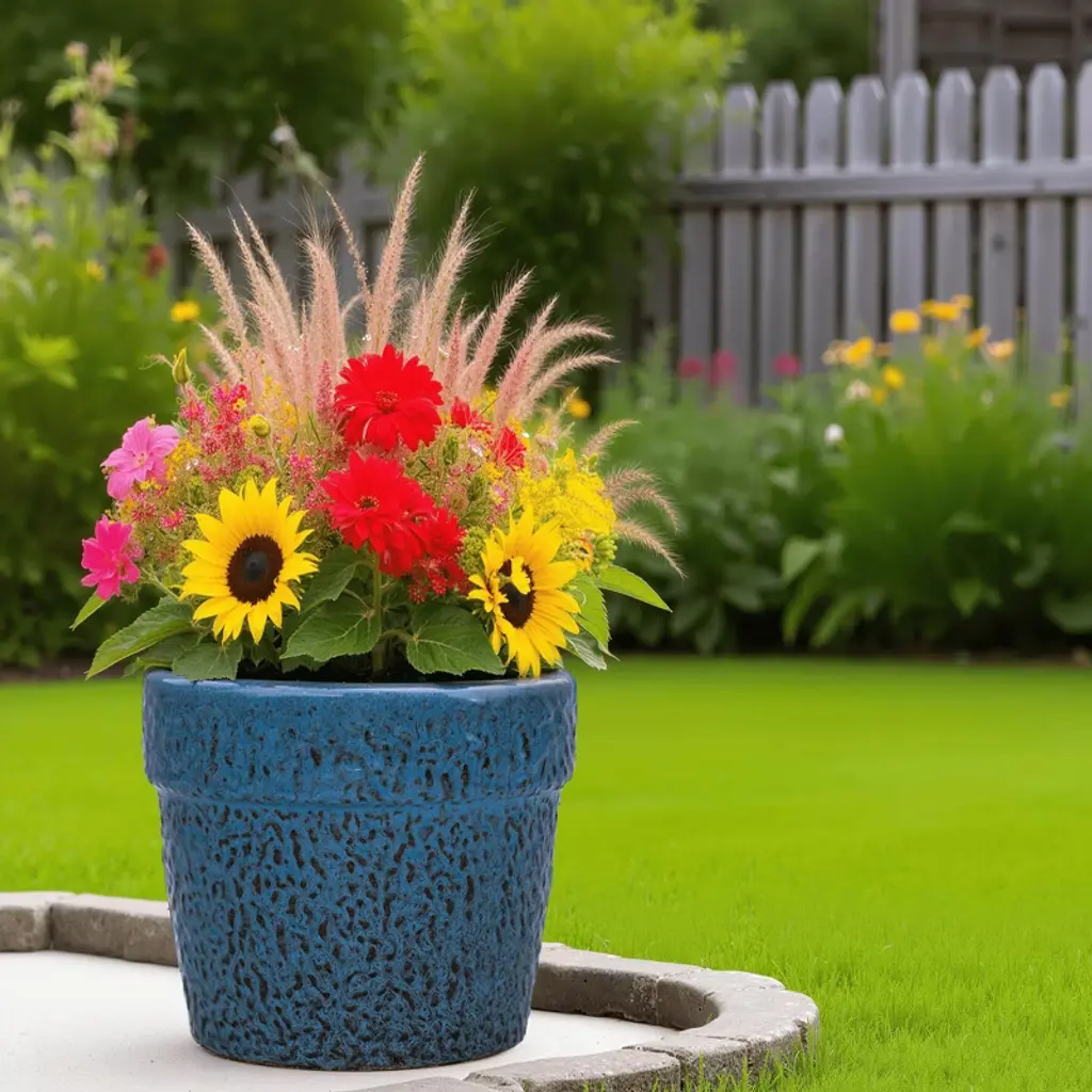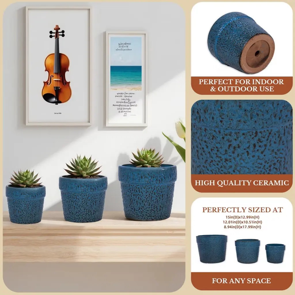 Wooakway 15" Dia Outdoor Indoor Ceramic Planter Pot Decorative Planter With Drainage Hole Patio Flower Pot