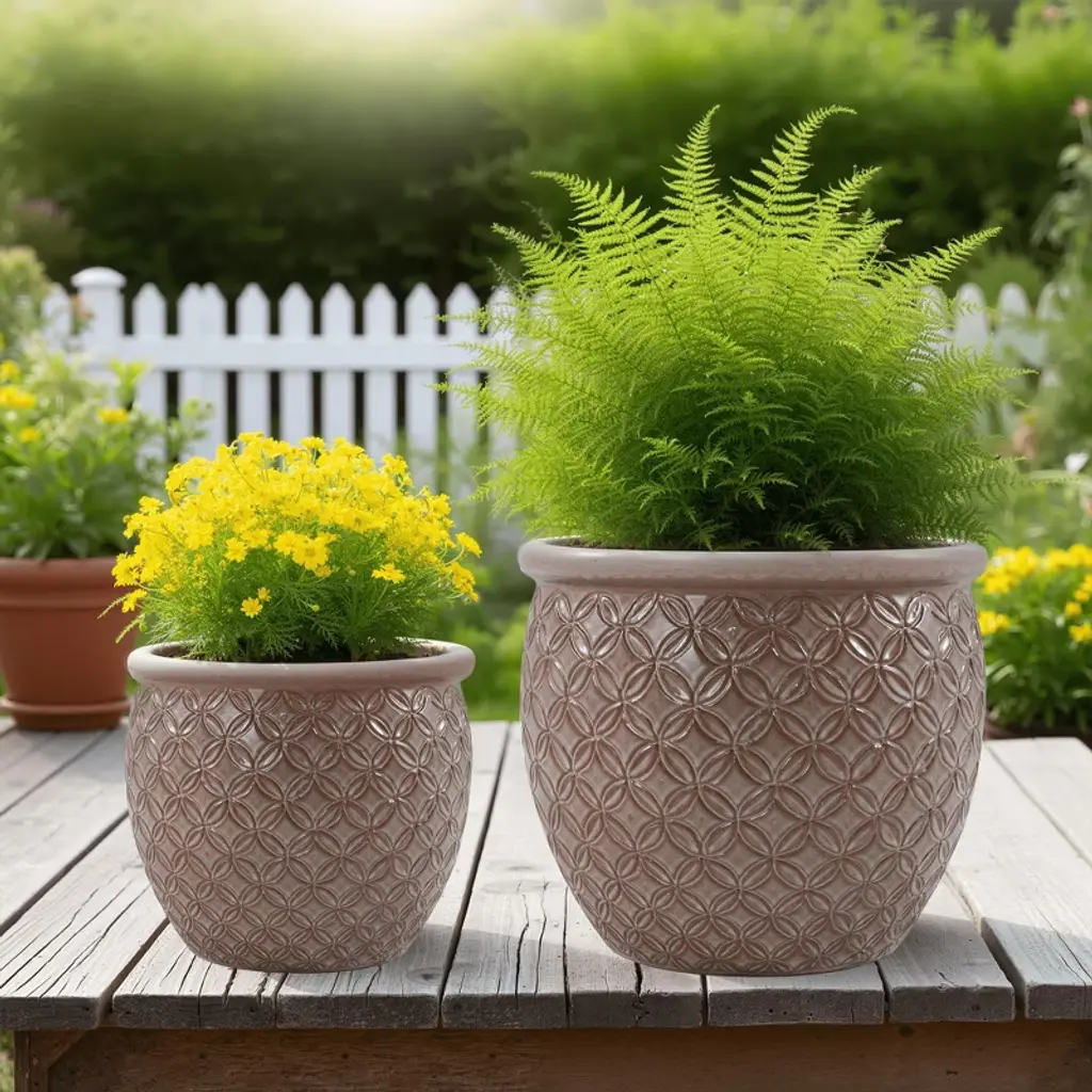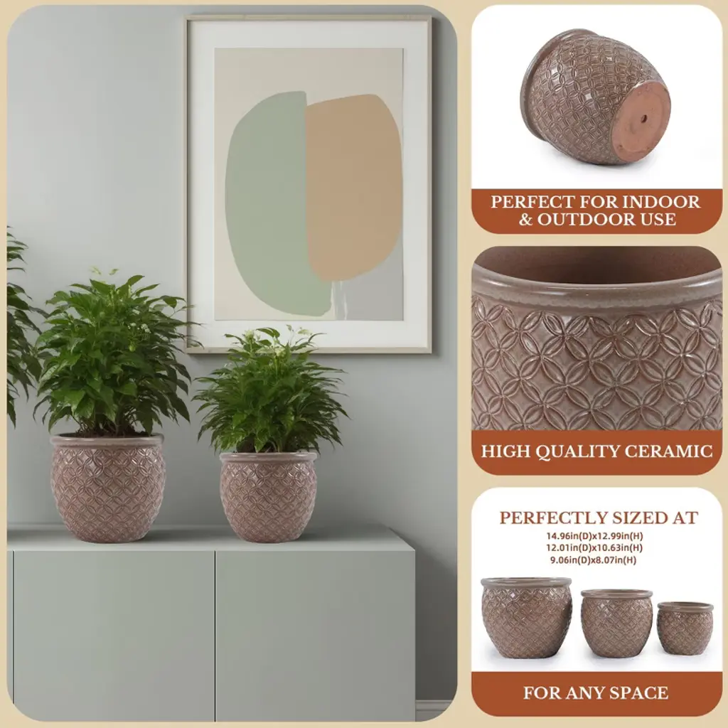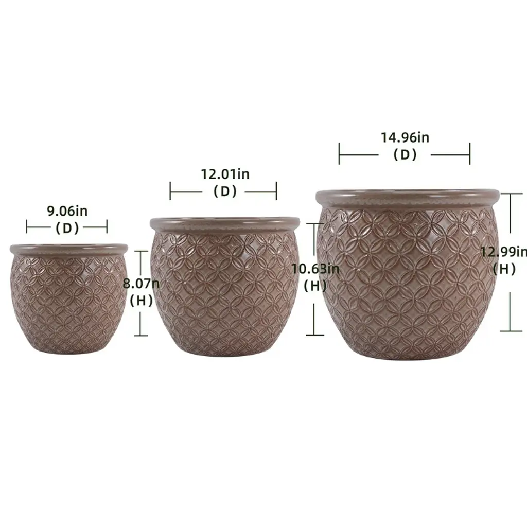 Wooakway 15" Dia Outdoor Indoor Ceramic Planter Pot Decorative Planter With Drainage Hole Patio Flower Pot