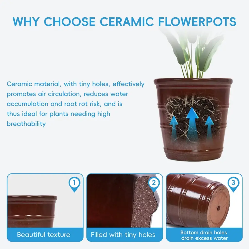 Wooakway 16" Dia Outdoor Indoor Ceramic Planter Pot Decorative Planter With Drainage Hole Patio Flower Pot