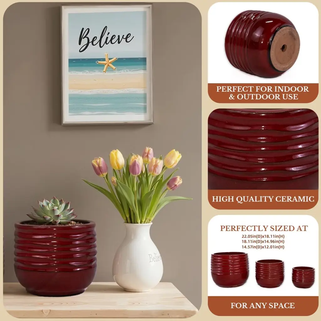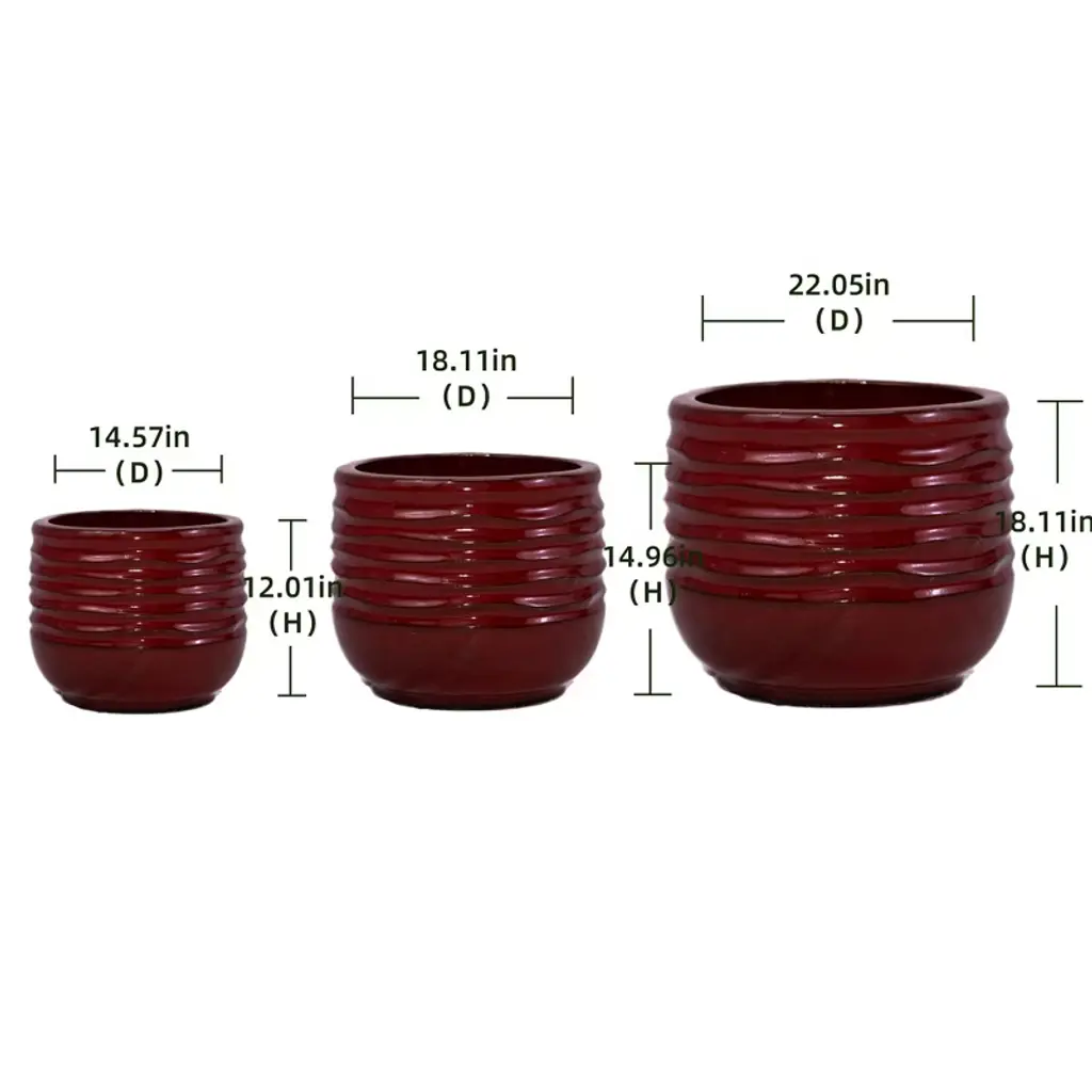 Wooakway 22" Dia Outdoor Indoor Ceramic Planter Pot Decorative Planter With Drainage Hole Patio Flower Pot