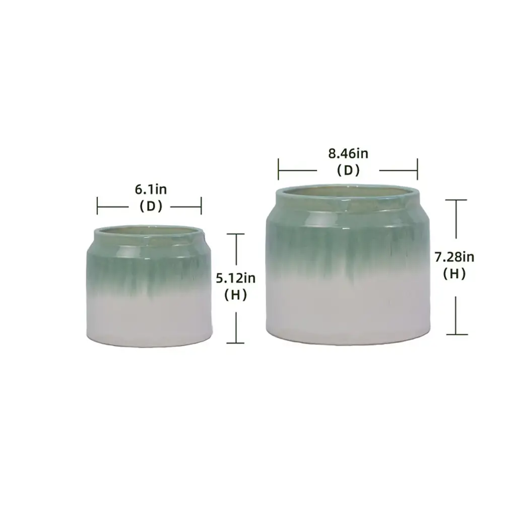 Wooakway 8" Dia Outdoor Indoor Ceramic Planter Pot Decorative Planter With Drainage Hole Patio Flower Pot
