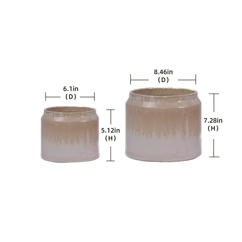 Wooakway 8" Dia Outdoor Indoor Ceramic Planter Pot Decorative Planter With Drainage Hole Patio Flower Pot
