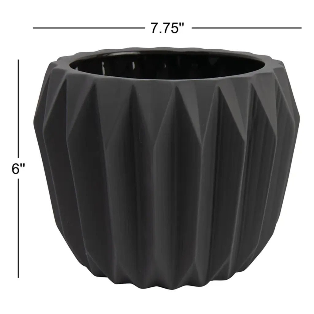 Plants get a stylish home with this matte gray stoneware fluted planter. The fluted design creates a beautiful contrast with the smooth and sleek surface. The matte gray finish complements any color scheme and adds a sophisticated touch to any space. The planter is made of sturdy stoneware that can last for years. It does not have drainage holes, but the shiny glaze inside prevents water from seeping through and makes it easy to wipe clean. The planter is ideal for indoor or outdoor use and can fit a 6-inch diameter pot. Whether used for succulents, herbs, or flowers, this fluted planter enhances the beauty of plants and décor.