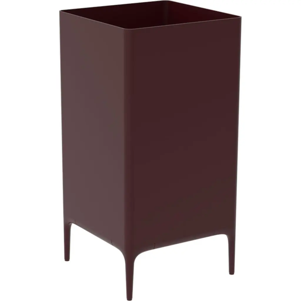 Xaloc burgundy 95 Pot by MOWEEDimensions: D45 x W45 x H90 cmMaterial: aluminiumWeight: 12 kgAlso available in different colours and finishes. Xaloc synthesizes the lines of interior furniture to extrapolate to the exterior, creating an elegant and versatile collection that can coexist in both contexts. The textile of its elements also want to represent this concern to provide the exterior with the warmth of the interior furniture. The name Xaloc comes from the wind with the same name. A strong wind typical of the Mediterranean area. A wind capable of eroding the environment it meets. The shapes of the collection represent this wind-induced erosion that generates natural and harmonic forms.Möwee is part of the work, effort and commitment of Gaviota, a leading company in the outdoor sector. It was set up as an independent venture to broaden horizons in the outdoor furniture world, with its own distinctive character and way of doing things. Freshness, simplicity, quality and design are at the heart of its DNA.