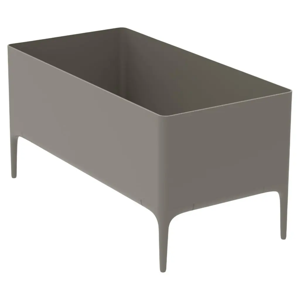 Xaloc Silver Planter by MOWEEDimensions: D90 x W45 x H45 cmMaterial: AluminiumWeight: 11 kgAlso Available in different colours and finishes. Xaloc synthesizes the lines of interior furniture to extrapolate to the exterior, creating an elegant and versatile collection that can coexist in both contexts. The textile of its elements also want to represent this concern to provide the exterior with the warmth of the interior furniture. The name Xaloc comes from the wind with the same name. A strong wind typical of the Mediterranean area. A wind capable of eroding the environment it meets. The shapes of the collection represent this wind-induced erosion that generates natural and harmonic forms.Möwee is part of the work, effort and commitment of Gaviota, a leading company in the outdoor sector. It was set up as an independent venture to broaden horizons in the outdoor furniture world, with its own distinctive character and way of doing things. Freshness, simplicity, quality and design are at the heart of its DNA.