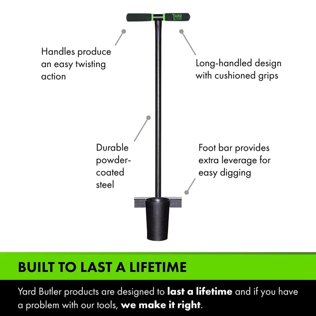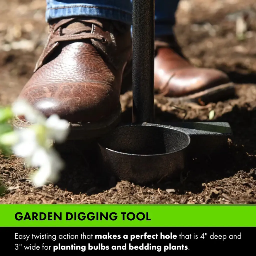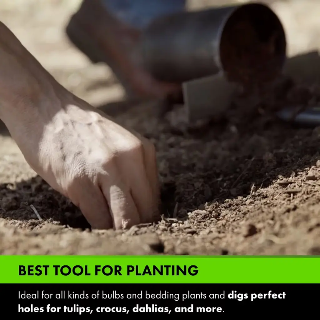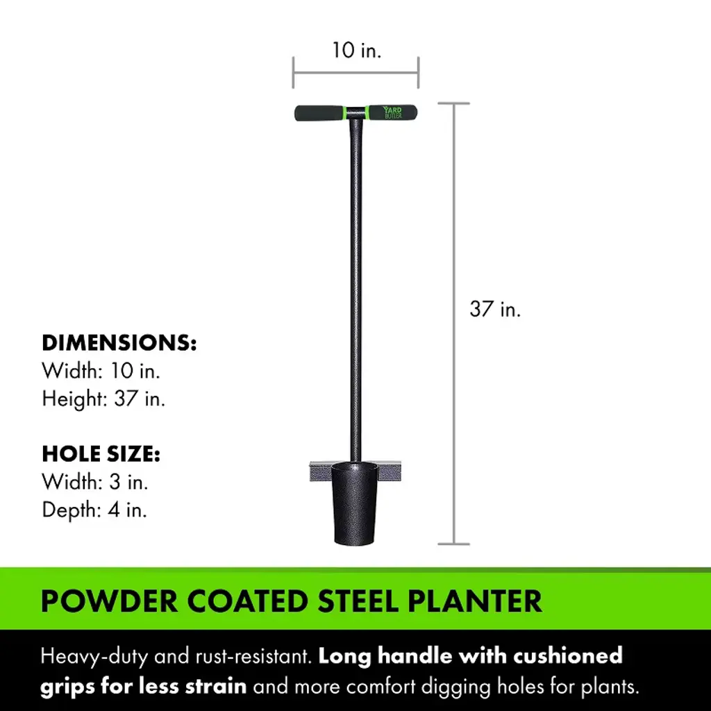 Save your time and your back with the Yard Butler Long Handled Bulb Planter garden digging tool. The 6 inch deep and 3 inch wide barrel is perfect for planting any kind of bulb and works great for seasonal bedding plants. The 37 inch tall handle eliminates bending over. For best results moisten soil before planting. Heavy-duty powder coated steel is rust resistant and built to last for a lifetime of planting beautiful spring flowers. Advantages of Using the Bulb & Garden Planter. Easy twisting action makes a perfect hole for bulbs and bedding plants. Long handle prevents bending so you can plant while standing.