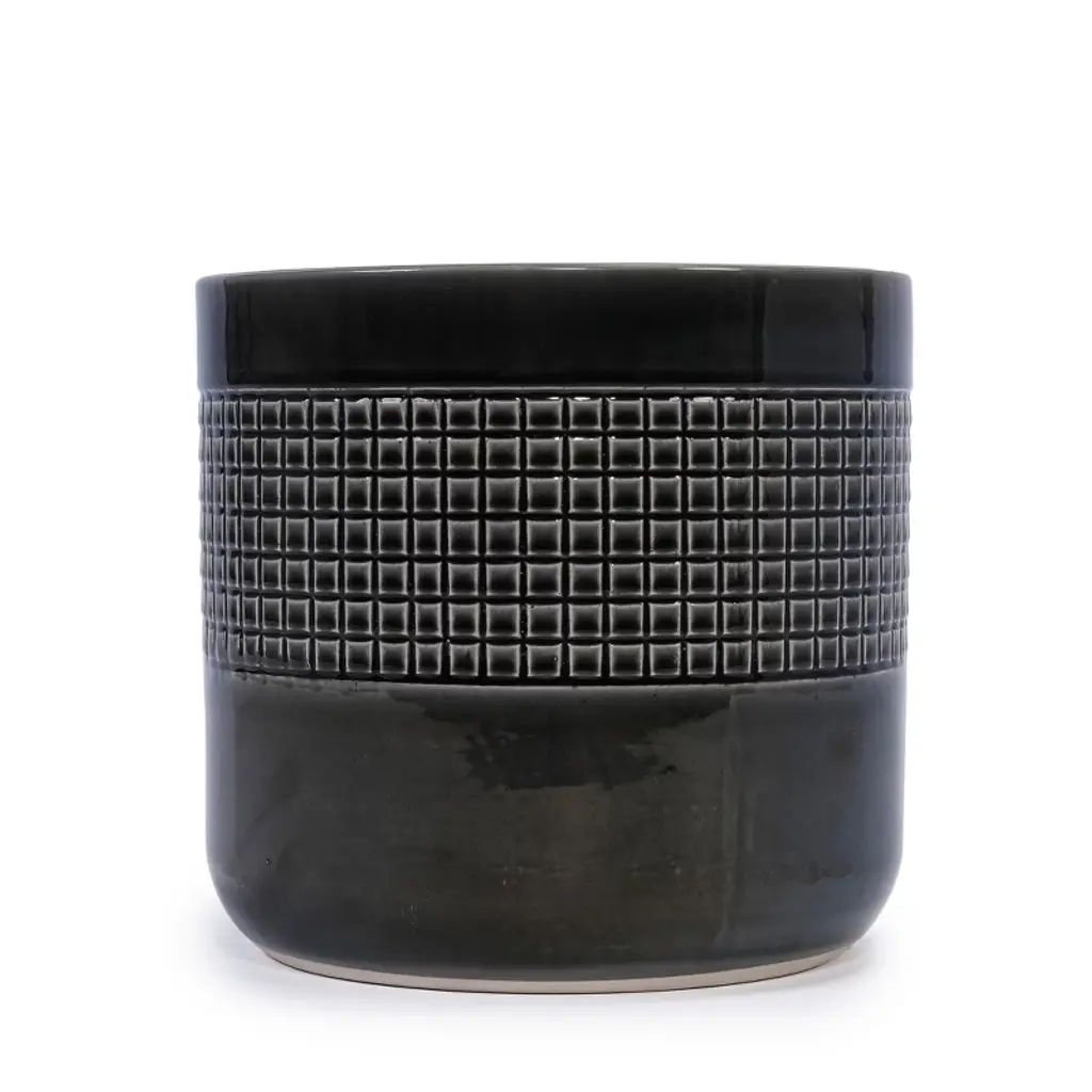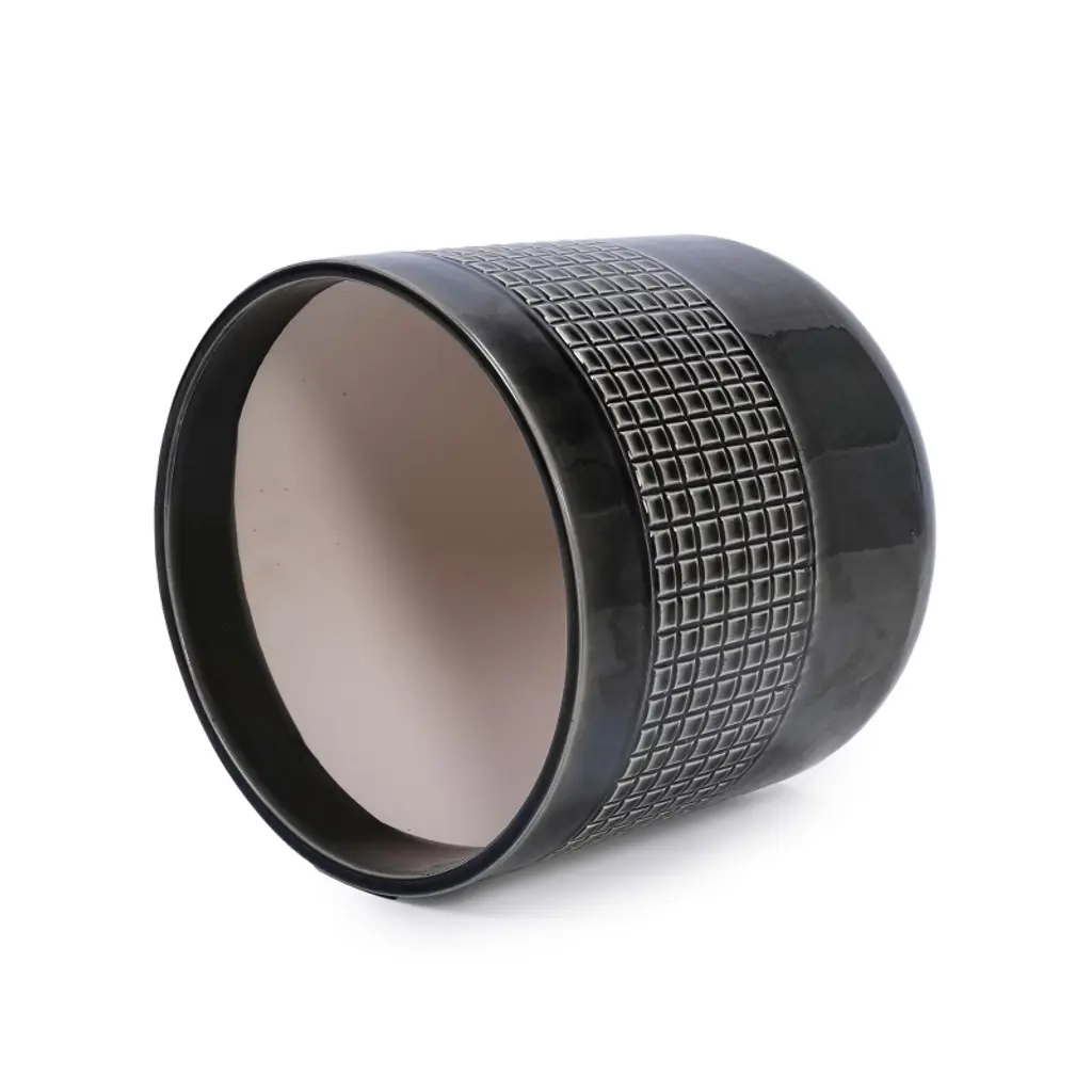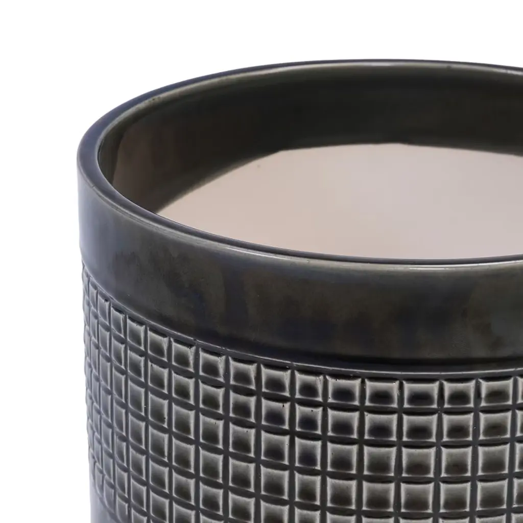 Yinvani Set Of 3 Grid Ceramic Flowerpot, Modern Planter For Patio, Garden, Windowsill - Black