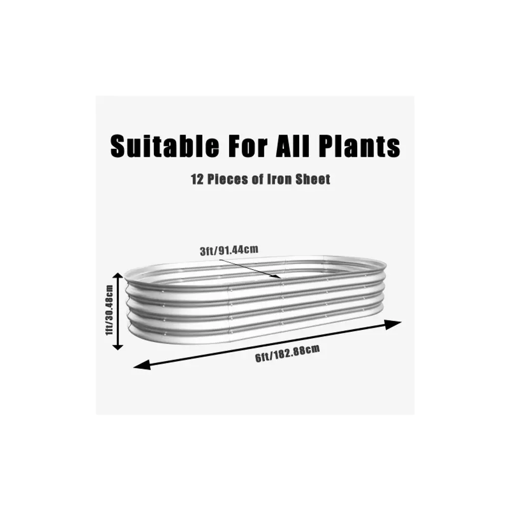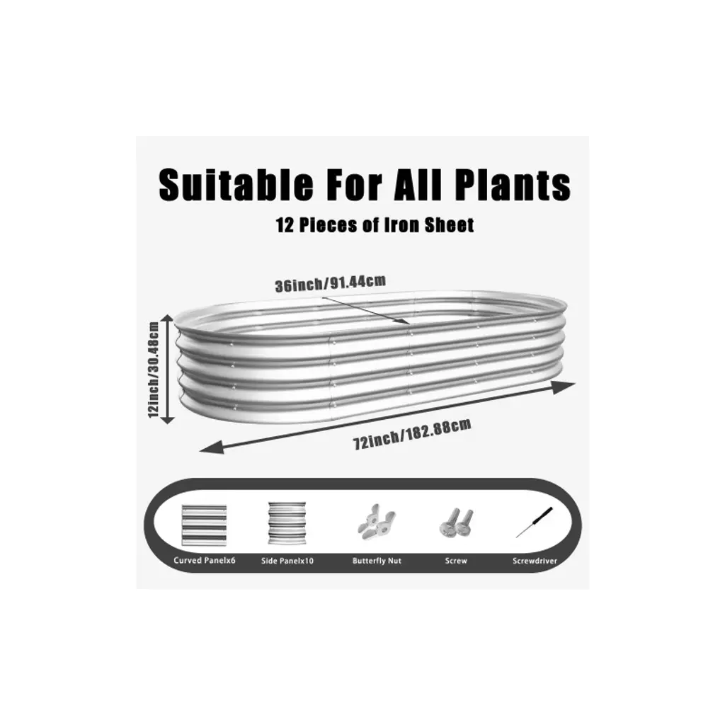 72"(L) x 36"(W) x 12"(H)(Within a reasonable range of error), Adjust the size according to your needs. The raised flower beds Kit features an innovative modular design and is available in more configurations. This way, you can assemble the garden beds outdoor into a variety of arrangements based on your backyard, enabling you to create different sized raised flower bed according to your gardening plan.