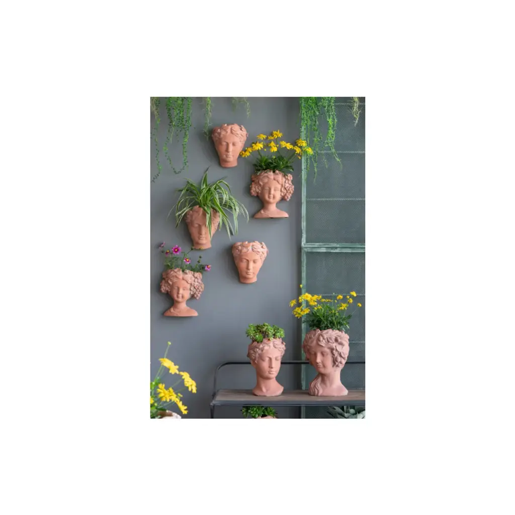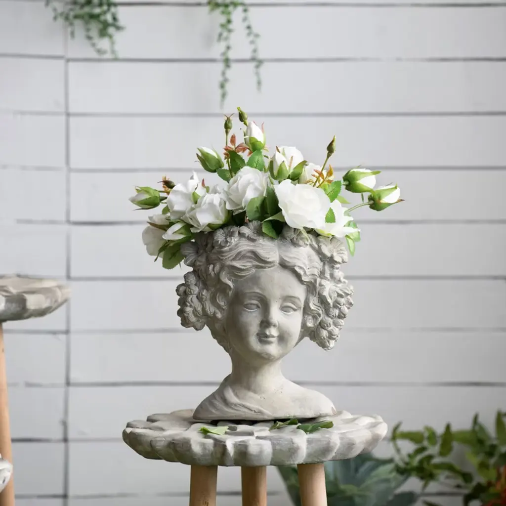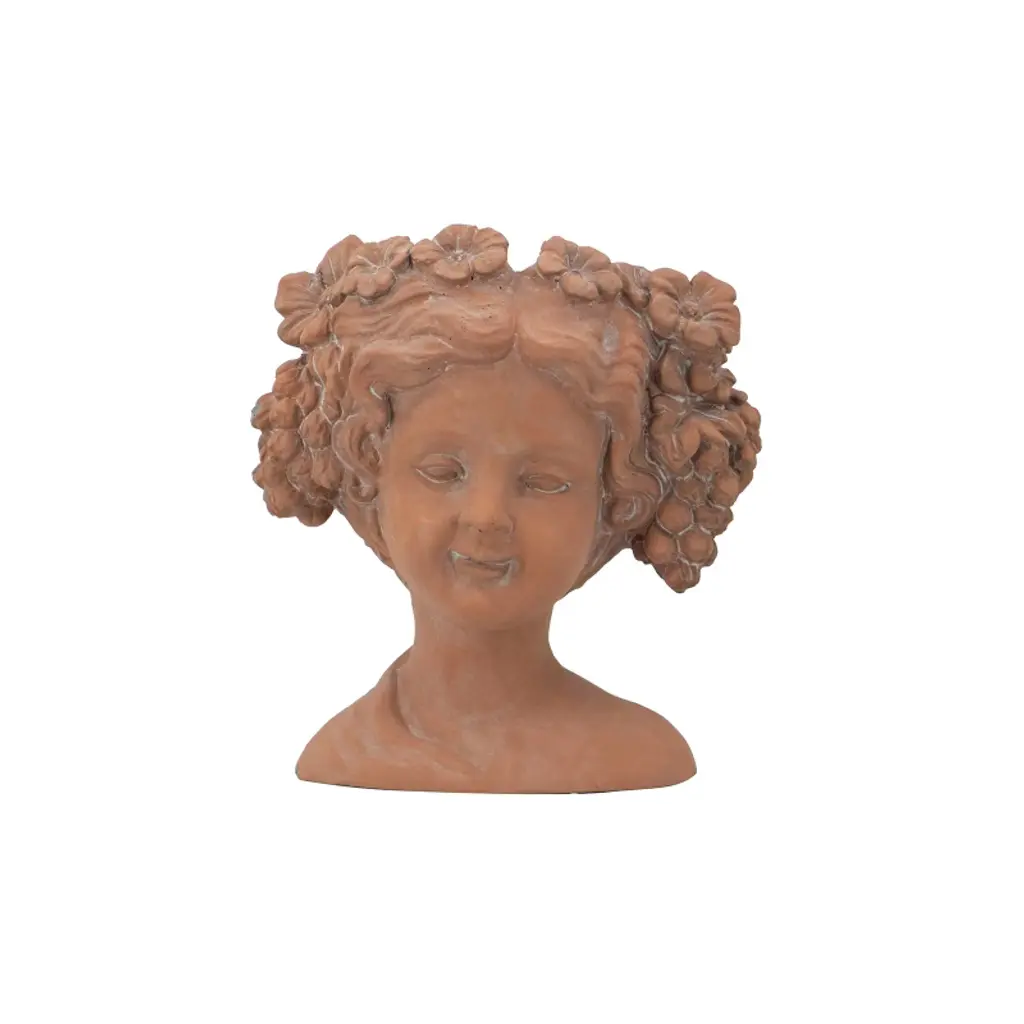 The Design Our head bust planter is the perfect place to show off beautiful blooms.Inspired by classical busts,this planter is designed to enhance your garden.Give your blooms a makeover with this classic head bust planter.