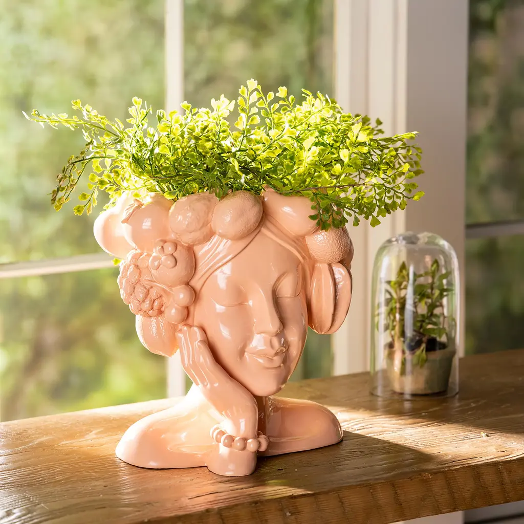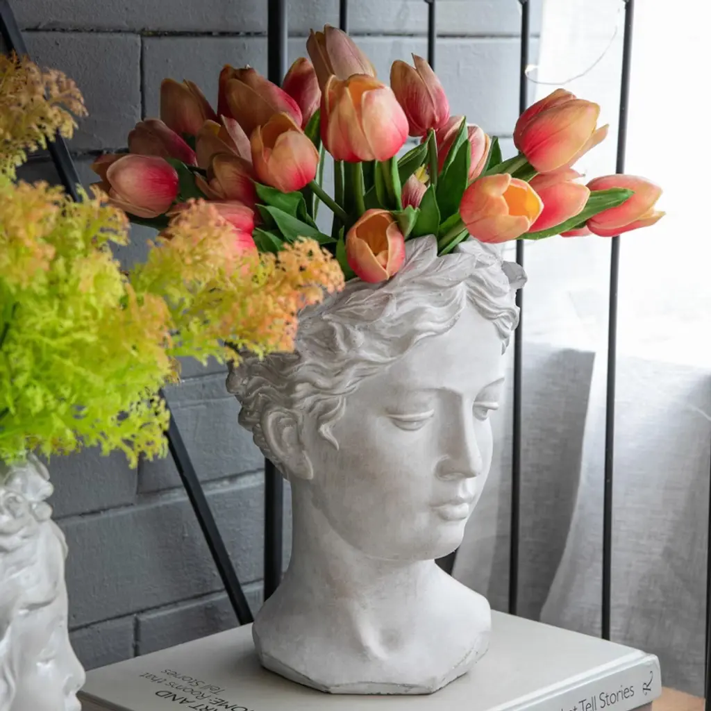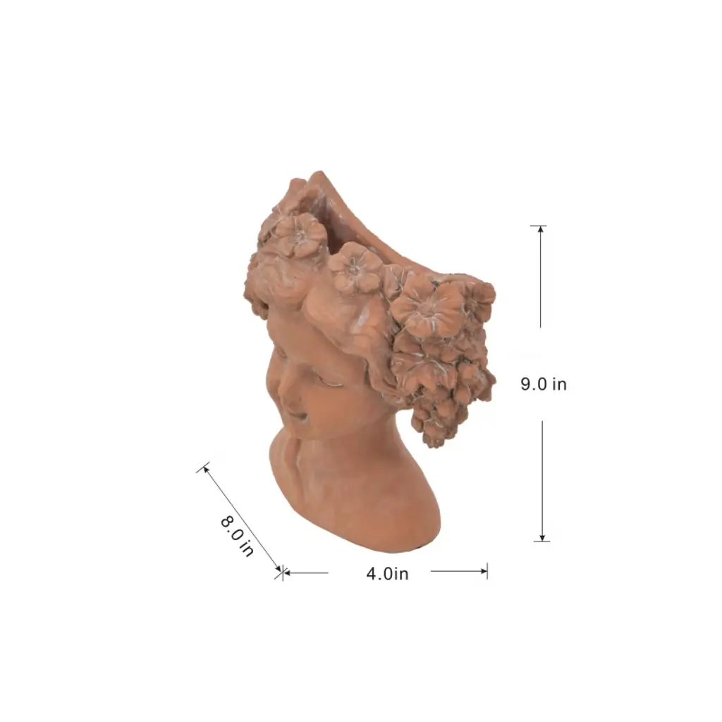 The Design Our head bust planter is the perfect place to show off beautiful blooms.Inspired by classical busts,this planter is designed to enhance your garden.Give your blooms a makeover with this classic head bust planter.