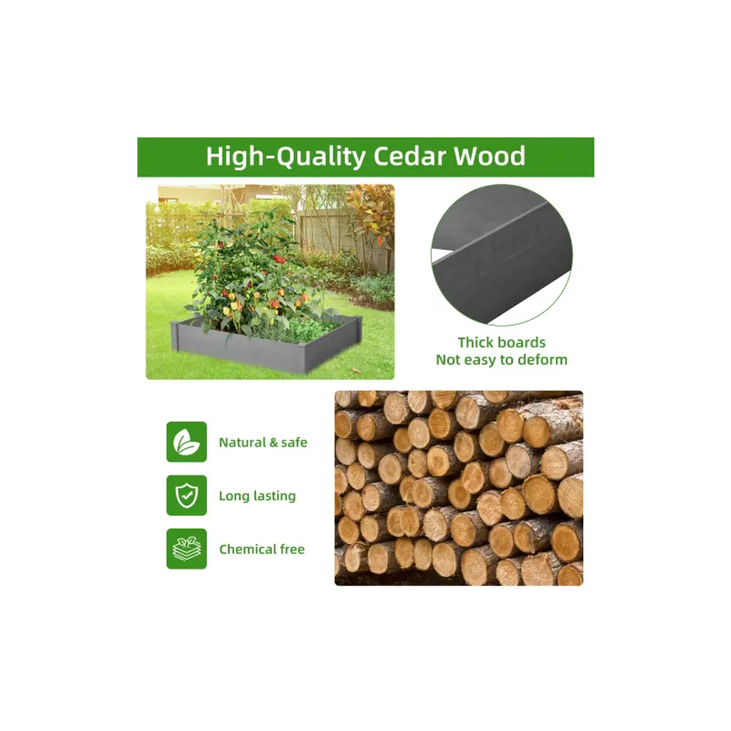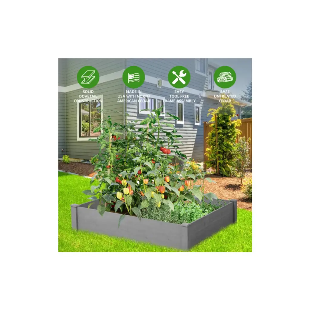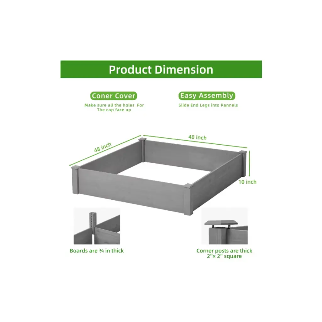 Yuhao Outdoor Wooden Raised Garden Bed - Square Planter Box With Tool-free Assembly - Over Floor Elevated Design,48"x48"x10"