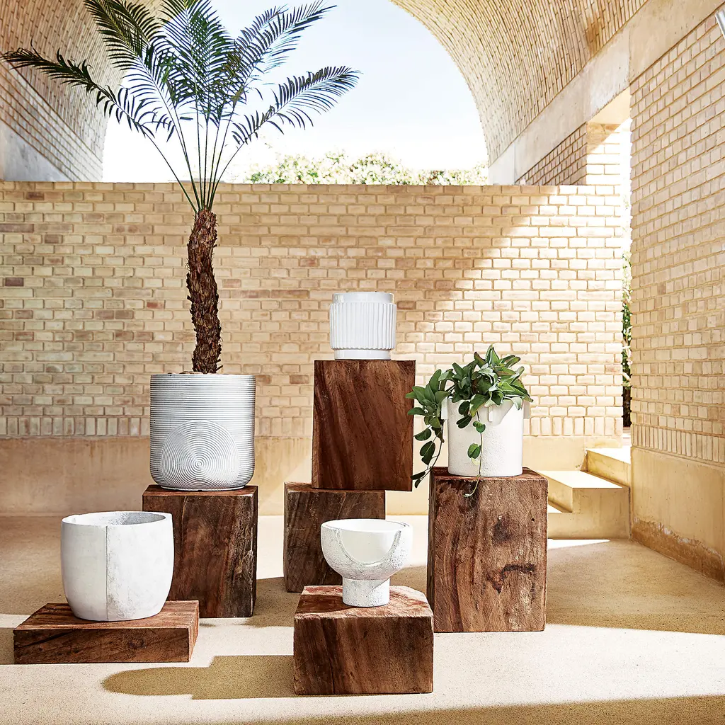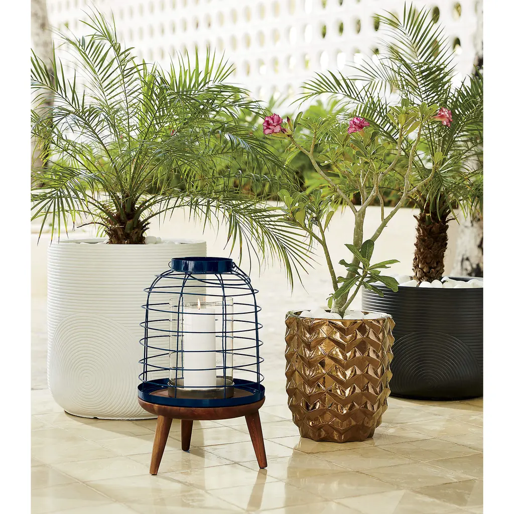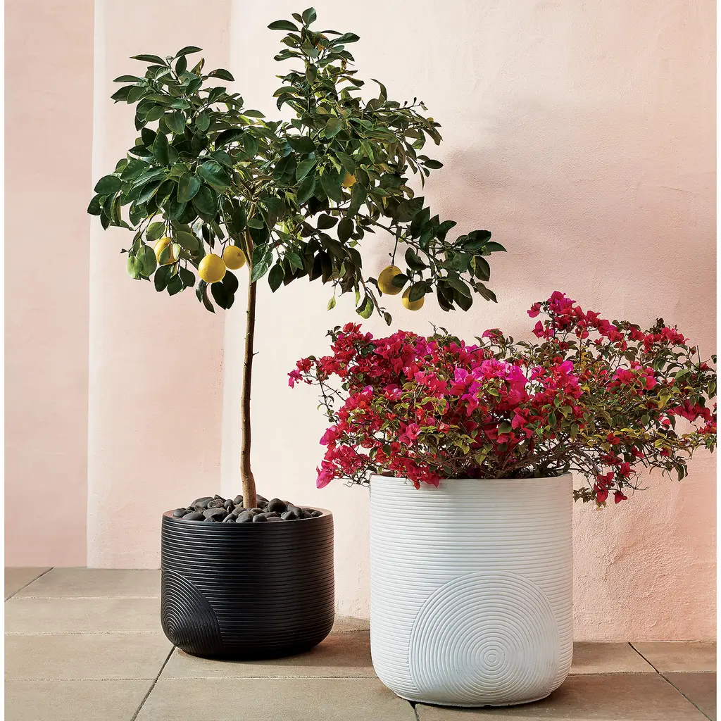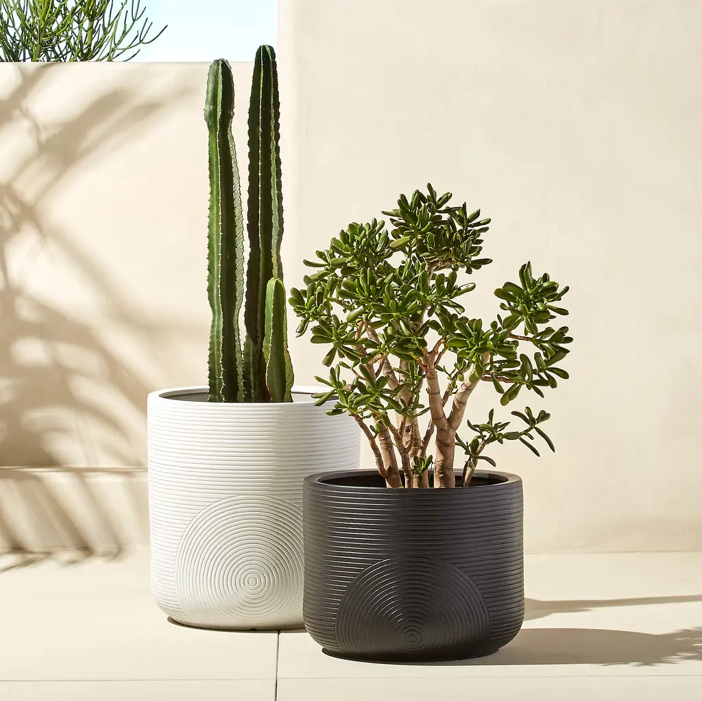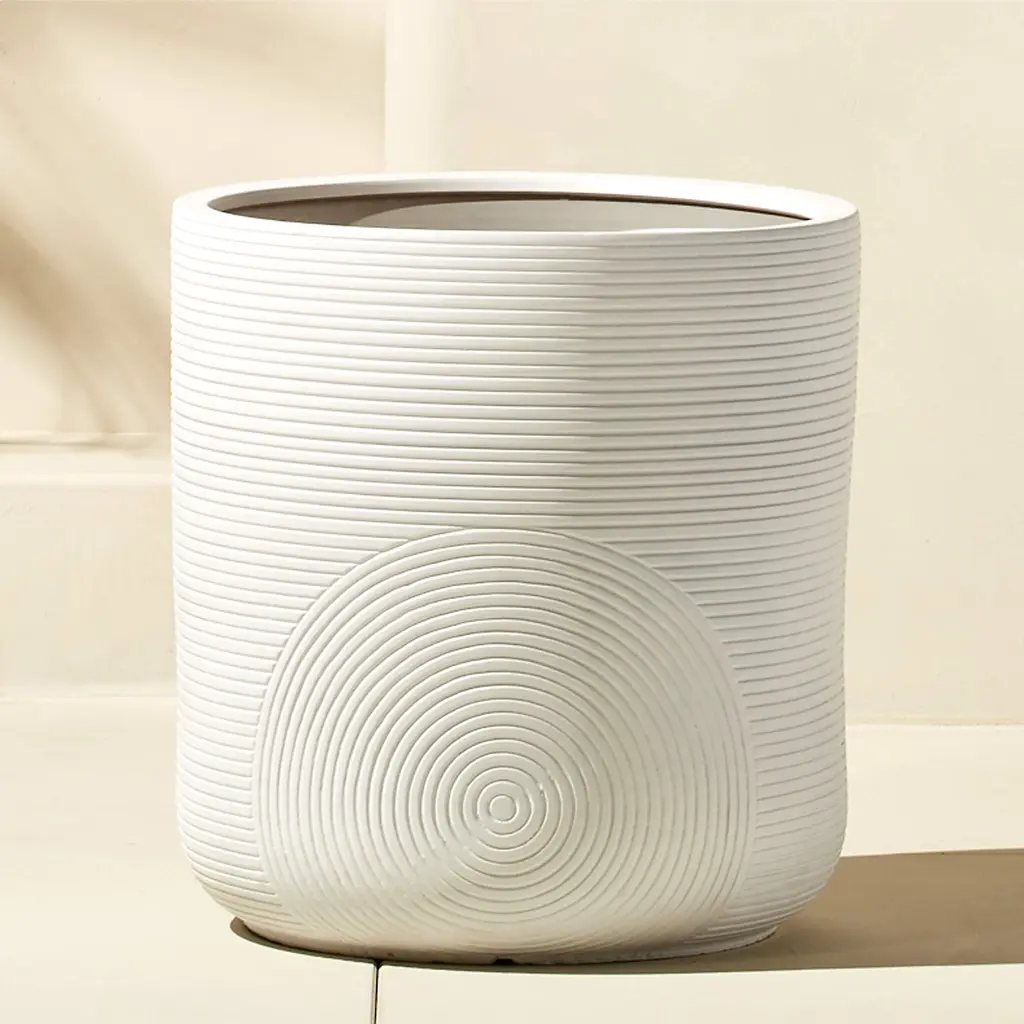 Graphic thumbprint design ups the modern appeal on this glossy clay planter.